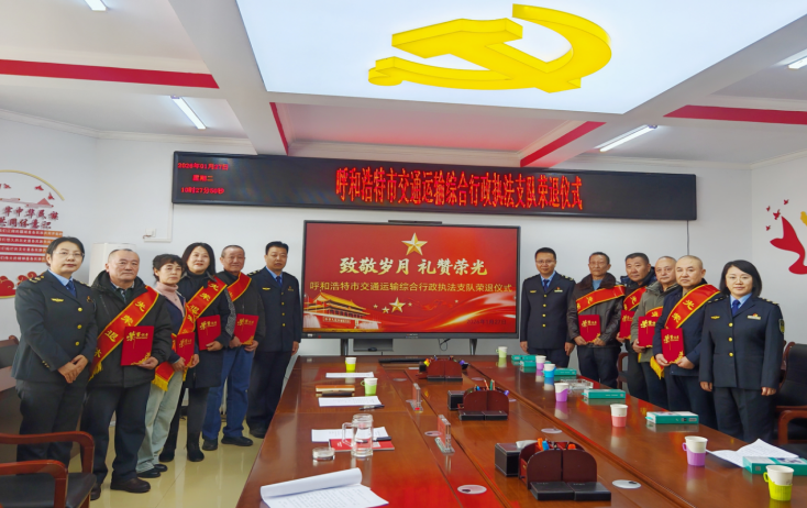 1月27日,呼和浩特市交通运输综合行政执法支队为11名同志举办了庄重温馨的荣退仪式。支队党委书记、支队长文迪,党委委员、副支队长范兰成及党群办、离退休人员工作科负责人和退休同志齐聚一堂,共同见证这一温情时刻。