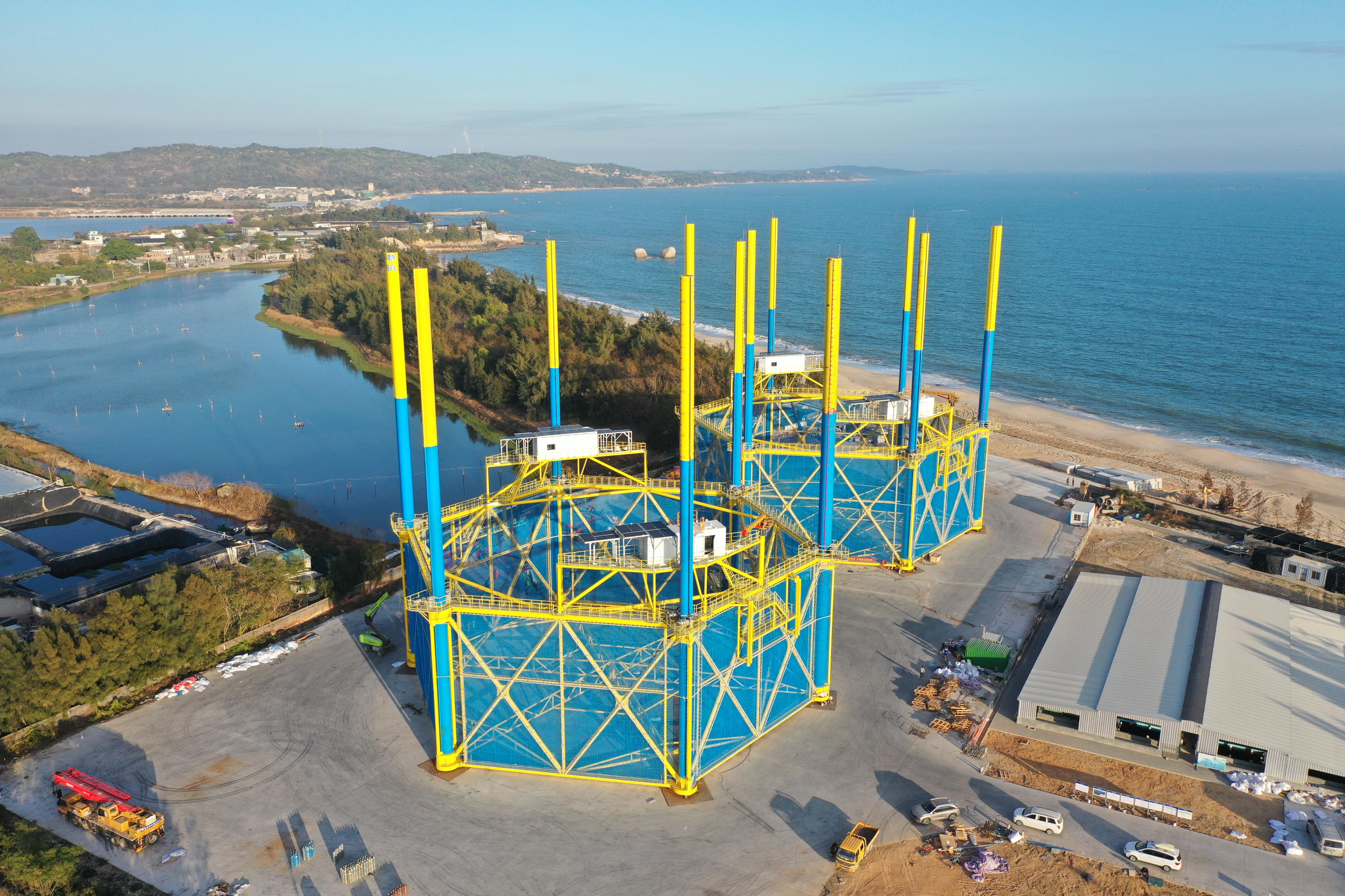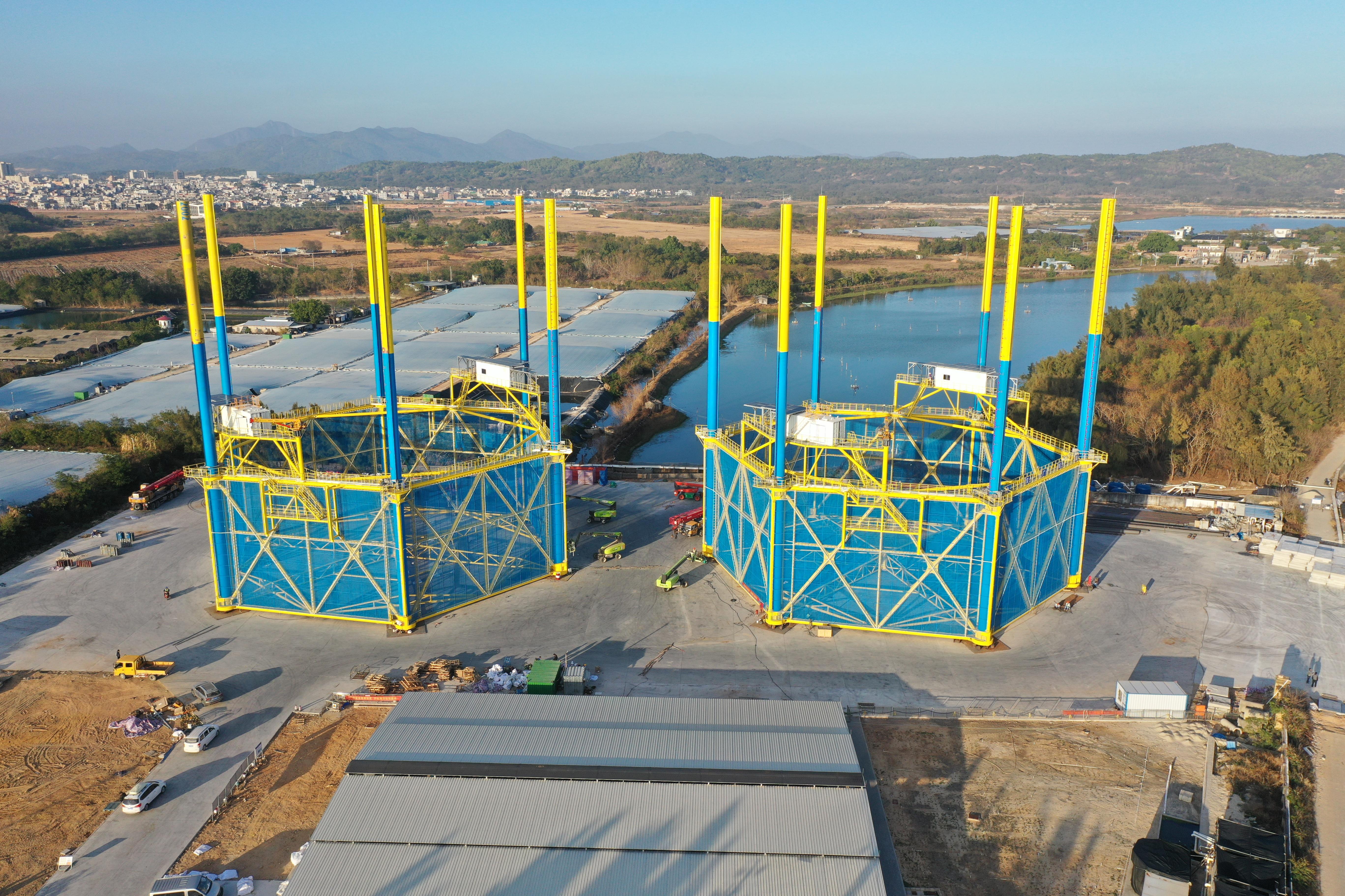该项目位于广东省汕尾市捷胜镇,主要建设内容包括2座2万立方米插桩可沉降桁架网箱,1座1万立方米半潜式网箱,230口C90加强型重力式网箱的建造、出运及安装,并投放于汕尾、揭阳等海域。