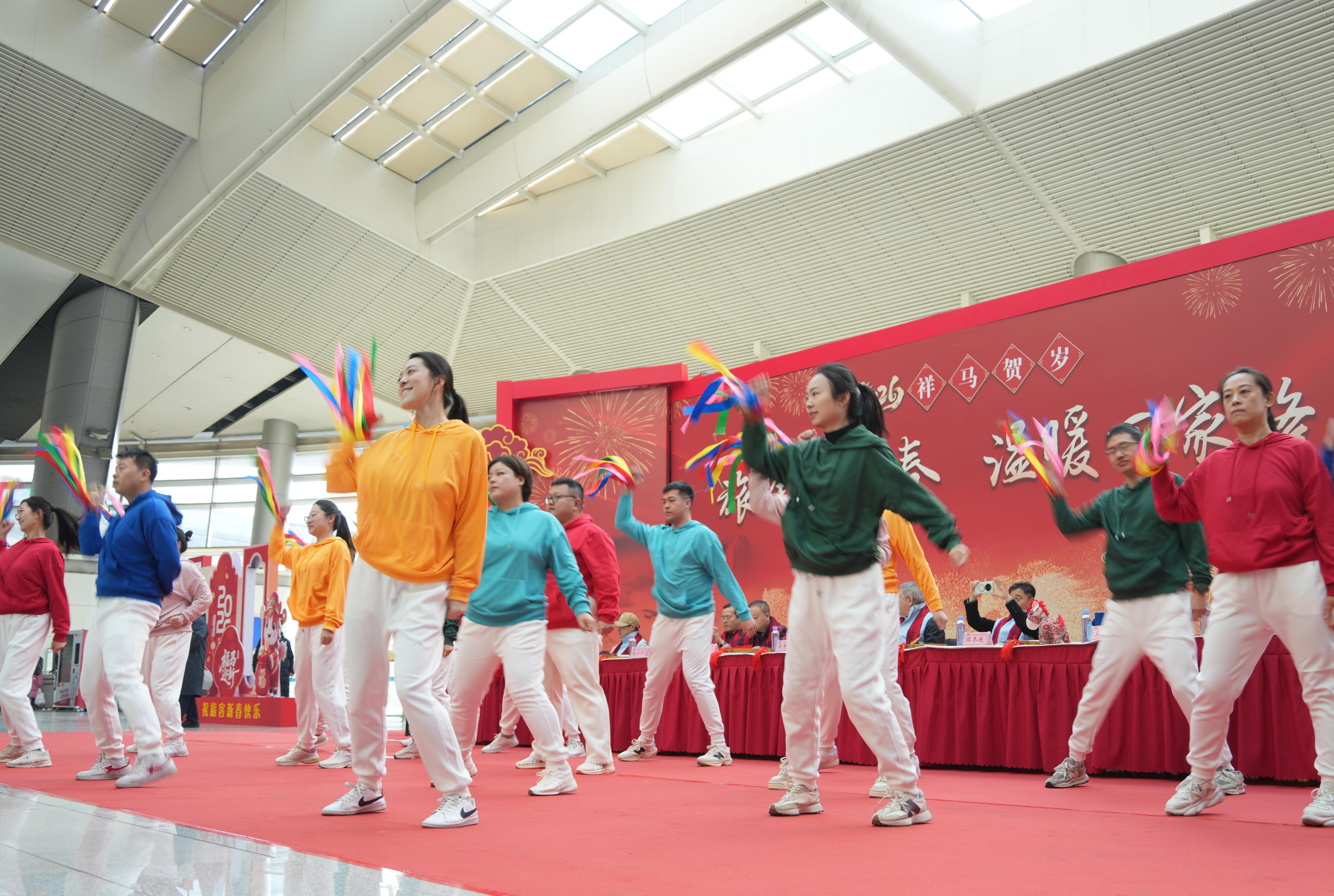 进入春运以来,北京南站客流逐日增加,在便捷、智能出行的同时,车站努力为旅客同步提供文化、温暖的出行体验。在车站工作人员、社会和高校志愿者的引导协助下,现场井然有序,一场别开生面的舞蹈和戏曲快闪与写福送祝福在此相遇,让春运归途的旅客,沉浸式体验了一场传统文化盛宴。