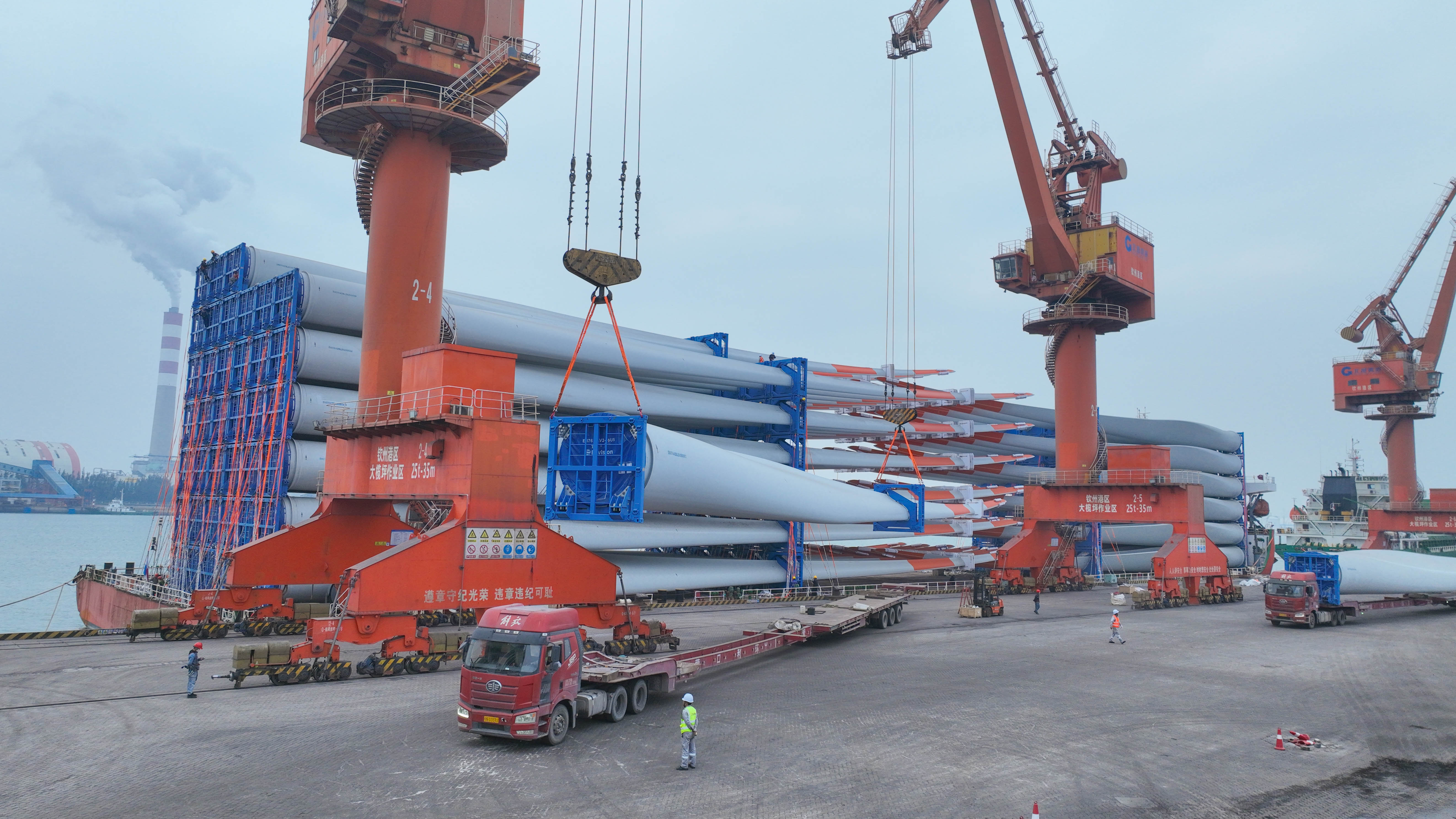 近日,随着最后一支风电叶片平稳着船,北部湾港钦州码头大榄坪第一作业区“博润九州”轮147支风电叶片装船任务完成,刷新国内单船风电叶片装载量纪录。