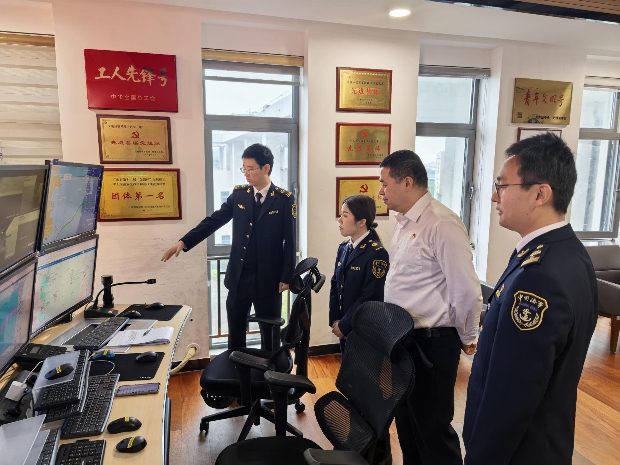 联勤联动聚合力,协同值守保平安。为凝聚安全保障合力,破解单一监管瓶颈,自3月4日起,港珠澳大桥航标处主动选派业务骨干进驻港珠澳大桥海事局,开展两会期间现场联合值班,构建“信息共享、协同研判、联合处置”的工作格局。双方紧扣港珠澳大桥水域通航安全核心需求,聚焦“海事智慧监管、航标效能实时监控、船碰桥风险精准防范”等关键领域,深化全方位业务交流与协同配合,推动保障工作提质增效。同时,双方常态化开展联合巡航巡检,重点排查船舶违规航行、航标移位等安全隐患,以联勤联动凝聚起守护大桥水域安全的强大合力,切实防范各类水上安全事故发生。