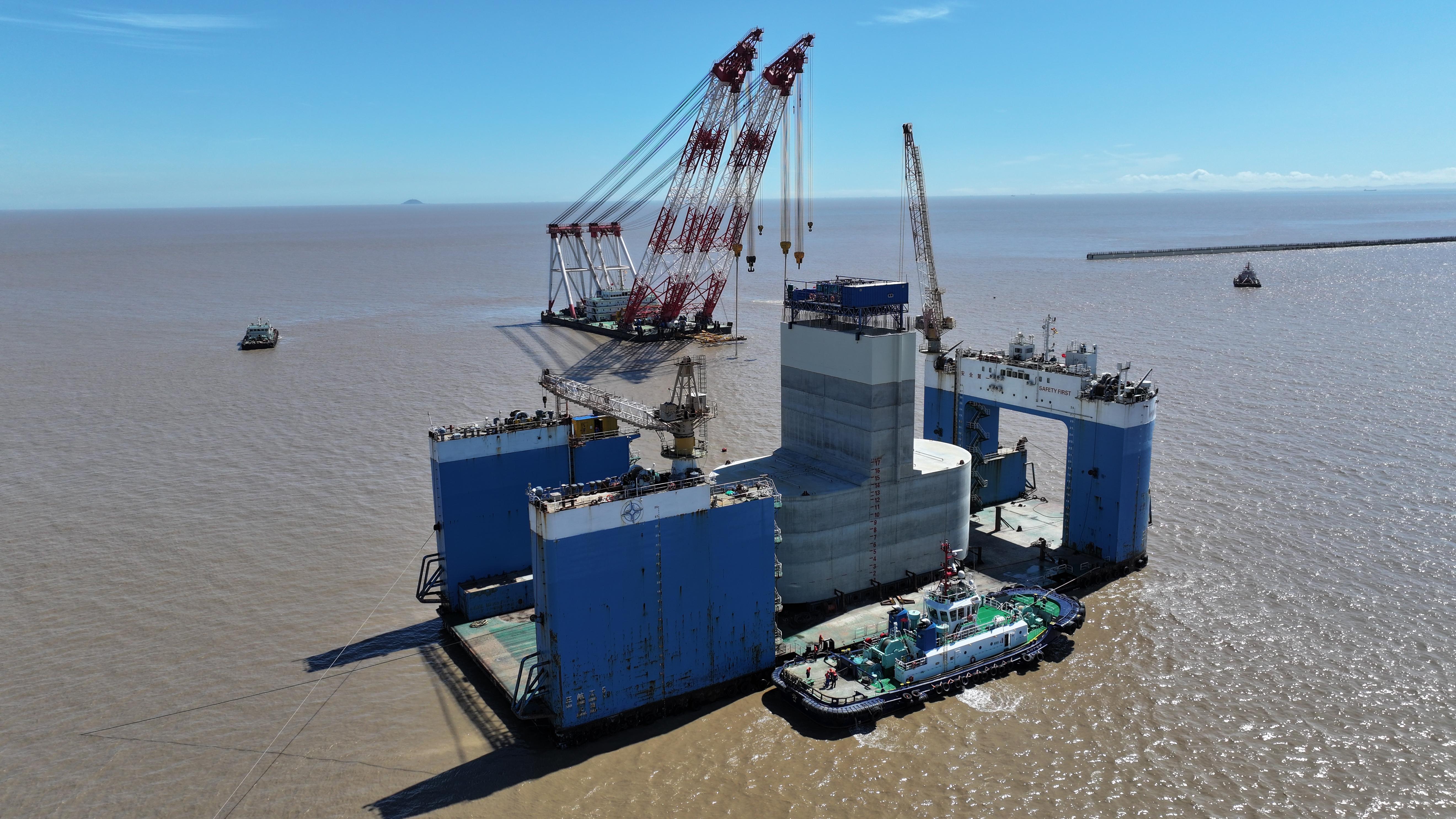 作为上海国际航运中心建设的标志性工程,小洋山北作业区岸线总长6100米,建成后将成为上海港最大的单体自动化码头。小洋山北作业区西防波堤工程全长2.8千米,由136个桶式基础结构组成。项目团队抢抓作业窗口,优化施工工序,将沉桶安装时间从最初的72小时压缩至36小时常态化作业。海事部门制定《小洋山北作业区水上交通服务指南》,联动项目部建立船舶联合调度中心,对审批的200多艘各类施工船实施统一协调,优化海上临时待泊区,有效解决了施工水域狭窄、船舶作业干扰的问题,确保每天数十艘同时作业的船舶有序运行。