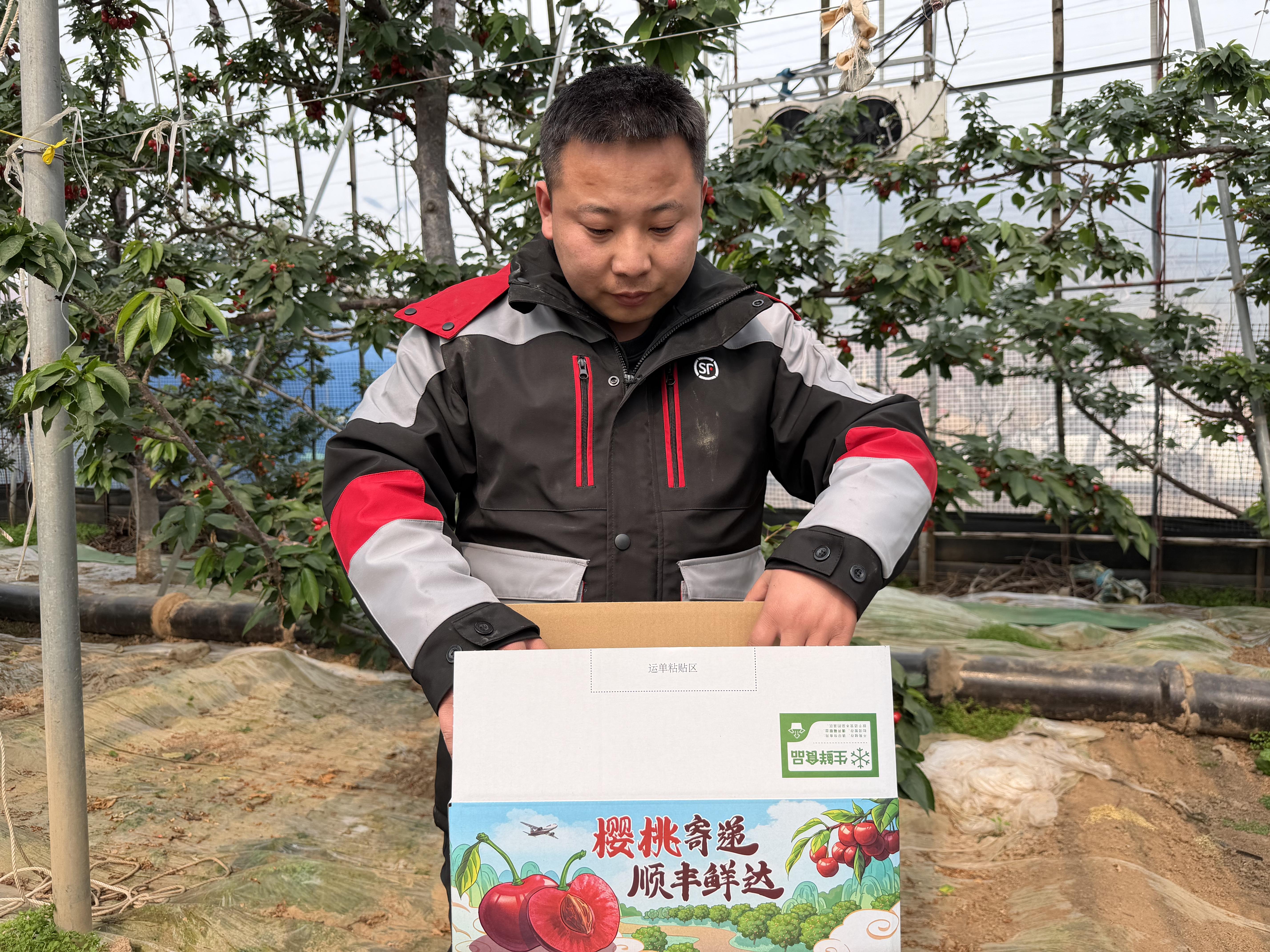 在孟凡红的大棚里,收购商李贡峰的手机一直响个不停,高峰时每日发出300多箱早熟大樱桃,95%的订单发往千里之外的广东。3年前,他将发货全部委托给顺丰。如今,下午装箱的樱桃,第二天10时即可送达广东客户手中,全程仅需15小时;发往新疆的货物,不到24小时便能完成签收。凭借稳定的时效与品质,去年李贡峰发出3000多件樱桃,零破损零纠纷。