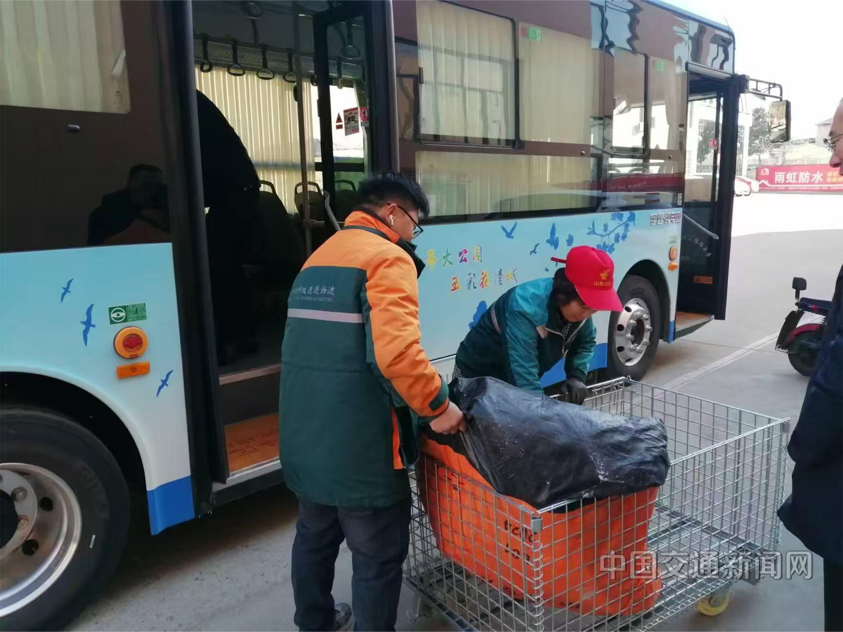 为便利山区群众购买农资,春耕期间,枣庄市山亭区交通运输局依托“客货邮+电商”配送模式,专门开通3条农产品运输专线。村民订购农资后,公交车到邮政分拣中心装货,将包裹整齐码放在车厢开辟的装货专区,再按线路发往各村,最后送达村民手中。
