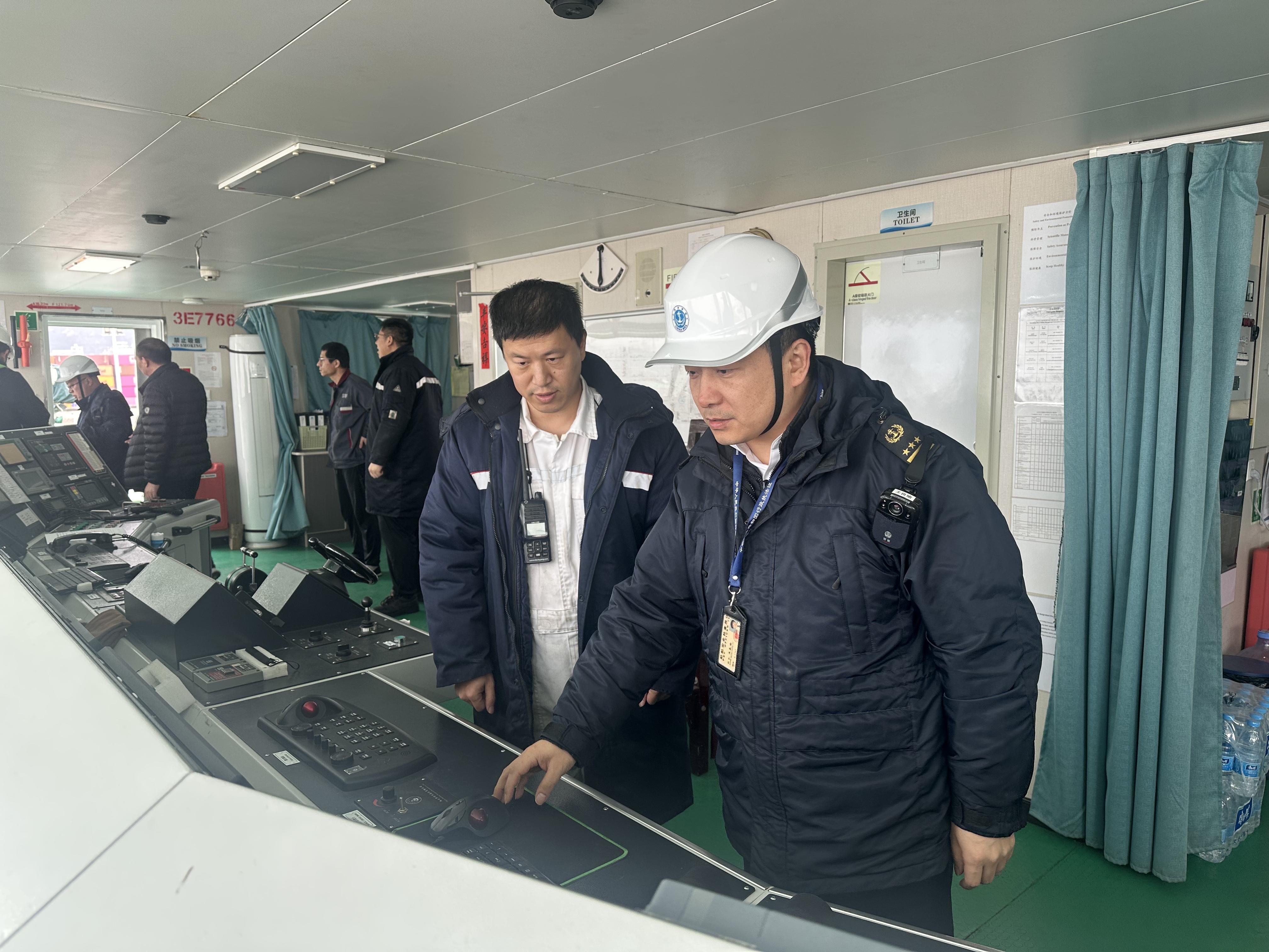 “红色森林”轮靠泊大麦屿港务码头后,玉环海事处执法人员联合海关、边检等口岸单位开展“联合登临检查”,将检查时间压缩在两小时内,保障船舶按照装载计划顺利在涨潮期间按时作业。船方代理表示这种“一次登临、联合检查”的模式,大幅缩短了在码头等待的时间。