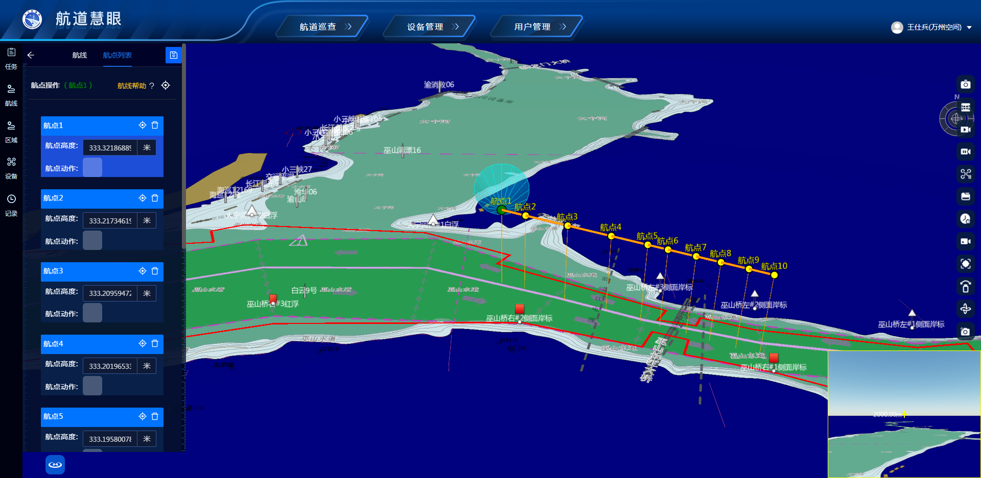 实地踩点工作完成后,该处随即组织召开专题研讨会,立足长江巫山大桥的结构特点、辖区航道的实际走向、当地的气象条件及现场实测数据,围绕航线规避方案、飞行参数调试、突发状况应急处置等核心内容开展多轮研讨论证,最终确定了合规可行的无人机航线优化方案。该方案以“安全作业、精准巡检”为核心导向,重新规划全段飞行路径,科学调整飞行高度与巡航速度,实现全程避让高压线路及桥梁关键结构,彻底消除了原有巡检路线的安全隐患,最大化发挥无人机高效全域巡检的技术优势。