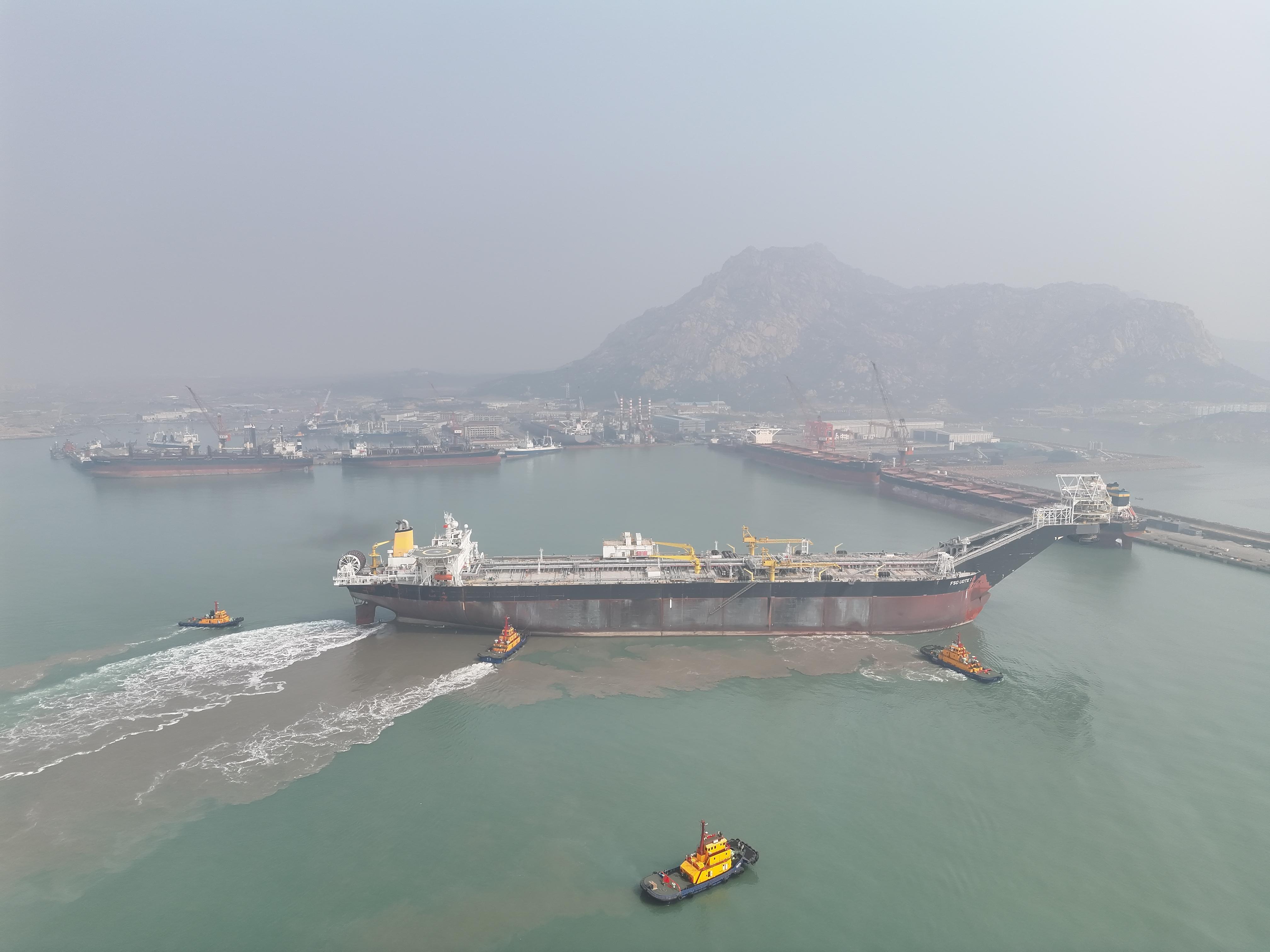 3月27日,在山东威海石岛海域,一艘总长近400米、型宽59米的钢铁巨轮,在威海海事部门的全程精密保障下,安全靠泊鑫弘重工船厂码头,该轮抵港后将进行为期16个月的维修改造。这艘名为“北方之珠”(FSO UOTE 1)号的超大型海上设施是近十年来山东沿海各港口进靠的最大尺度浮式储油装备。