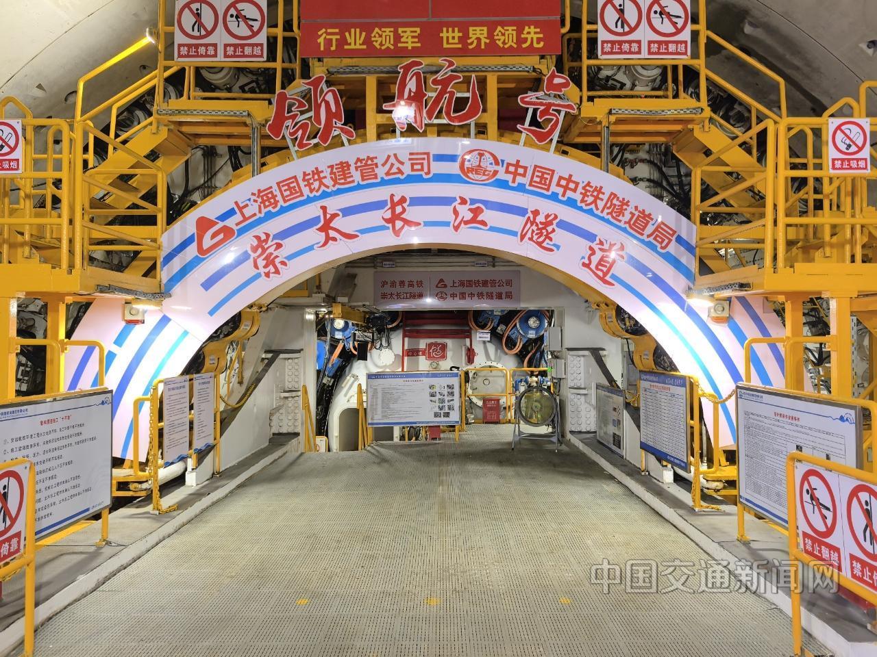 崇太长江隧道是我国“八纵八横”高速铁路网沿江高铁通道、沪渝蓉高铁沪宁段关键控制性咽喉工程。隧道全长14.25公里,是世界高铁盾构隧道独头掘进距离最长(11.325公里)、刀盘直径最大(15.4米)、水下过江隧道行车速度最高(350公里/小时)、长江水下最深(89米)的隧道,是我国目前建设标准最高、掘进距离最长、规模最大的世界级高铁越江隧道。该隧道由上海国铁建管公司建设管理、中铁隧道局施工建设,隧道建成运营后,将实现高铁穿越长江不减速的壮举。