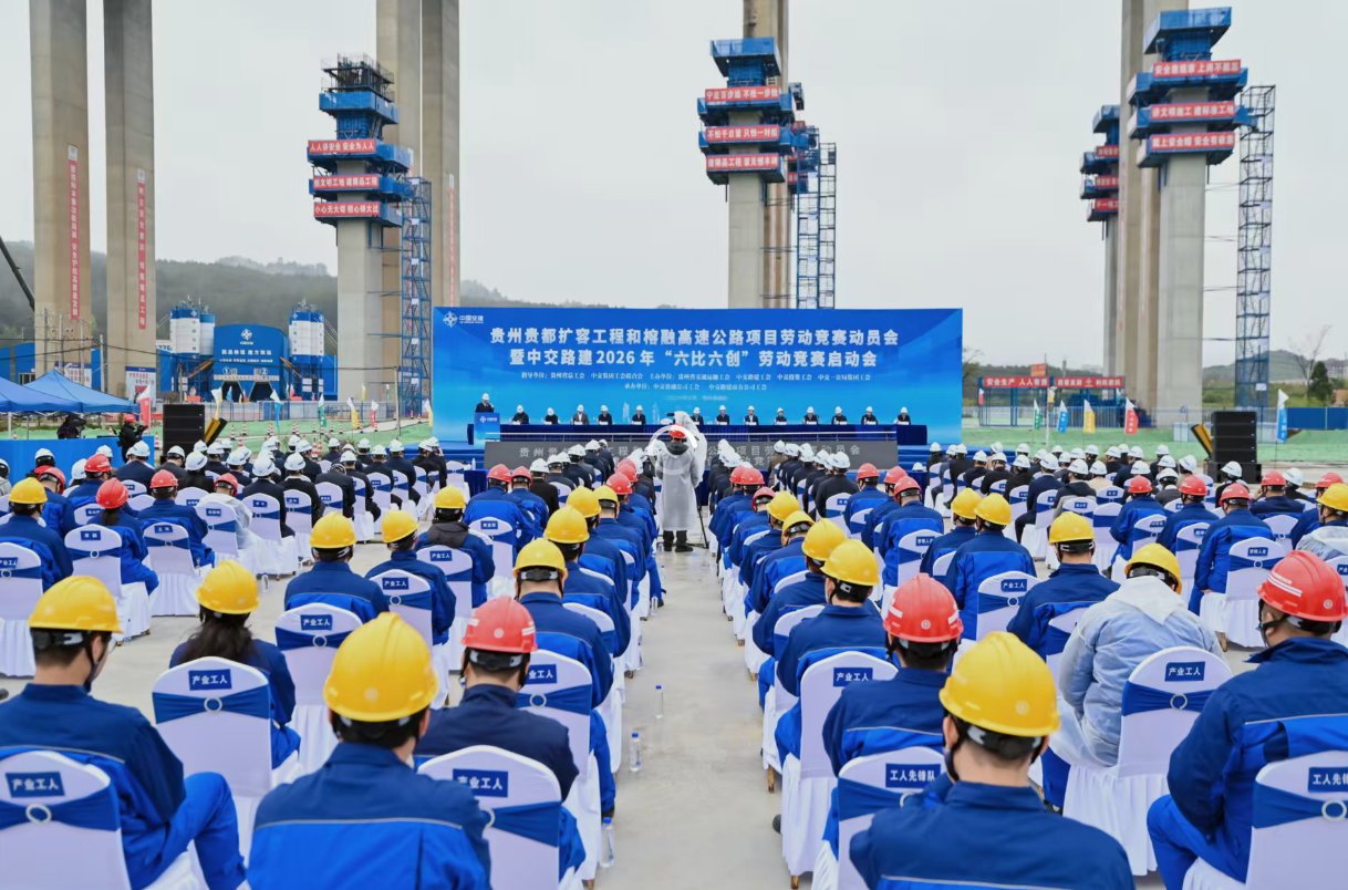 3月31日,贵州省两大重点项目——贵都扩容工程和榕融高速公路项目劳动竞赛动员会暨中交路建2026年“六比六创”劳动竞赛启动会在贵都扩容工程莲花特大桥项目现场举行。