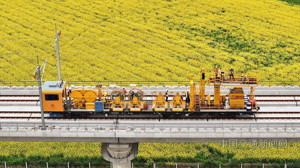 昌九高铁全线将架设335.4条公里接触网导线,预计今年6月中旬全部完成。项目团队将导线张力、平直度误差精准控制在0.1毫米以内。
