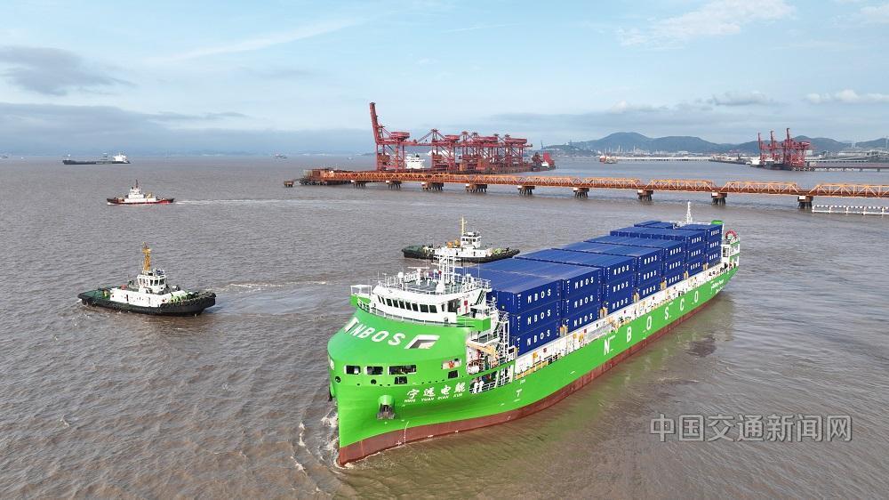 4月15日,我国首艘万吨级纯电动智能集装箱船“宁远电鲲”轮从浙江宁波舟山港北仑港区解缆启航,驶向嘉兴港乍浦港区,投入商业航线运营。这标志着我国沿海集装箱运输开启纯电驱动、智能领航的全新探索发展阶段。