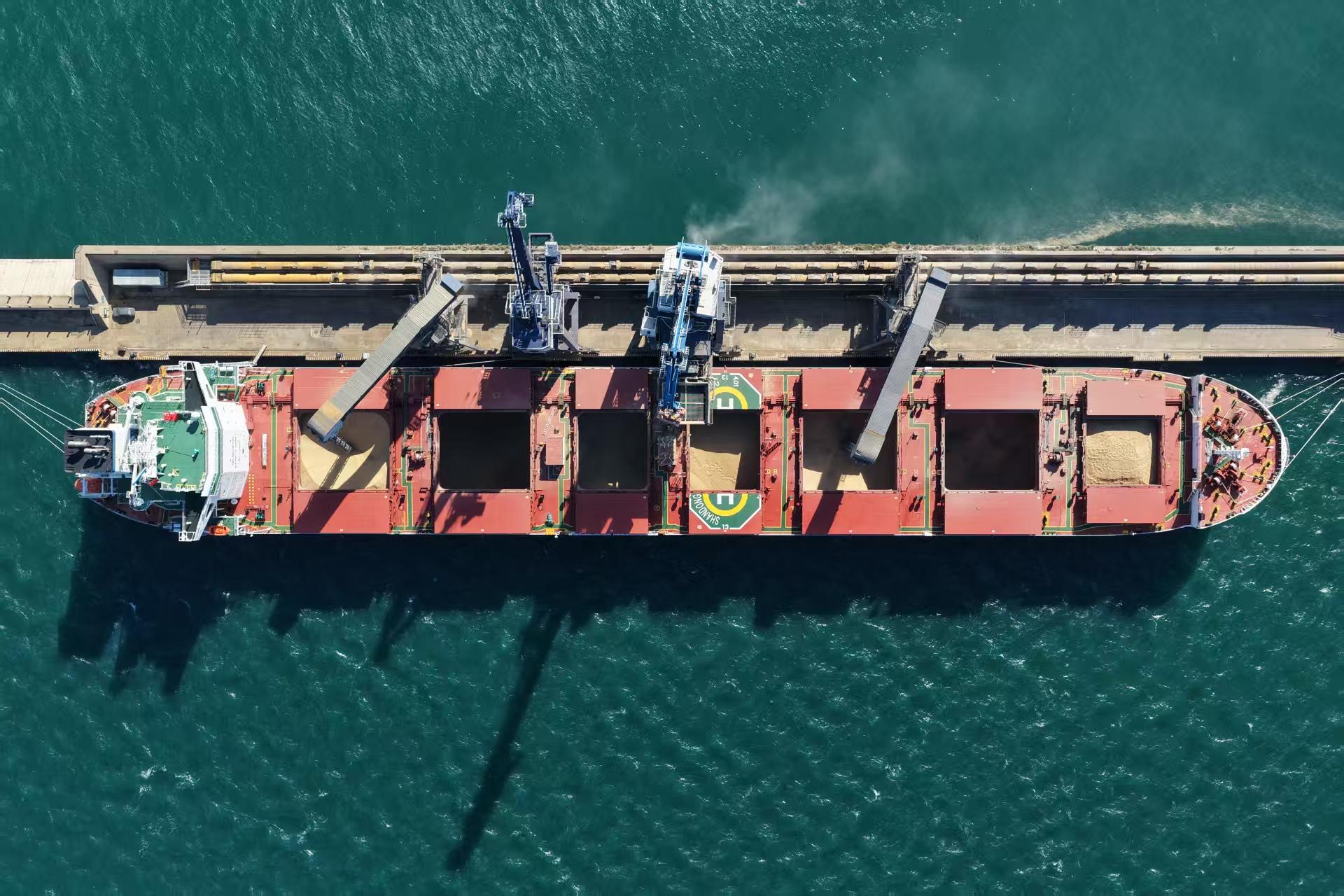作为东北地区粮食转运的重要枢纽,大连港散粮码头承载着粮食集港、中转、分拨的重要使命,玉米、大豆、大麦等粮食货种平均每天有上万吨在此集结汇聚,再通过公路、铁路、水路等方式,运往周边及南方各地。这里,不仅承载着粮食保供的重要使命,也是践行“合作共赢”理念、赋能大连港口经济发展的生动缩影。