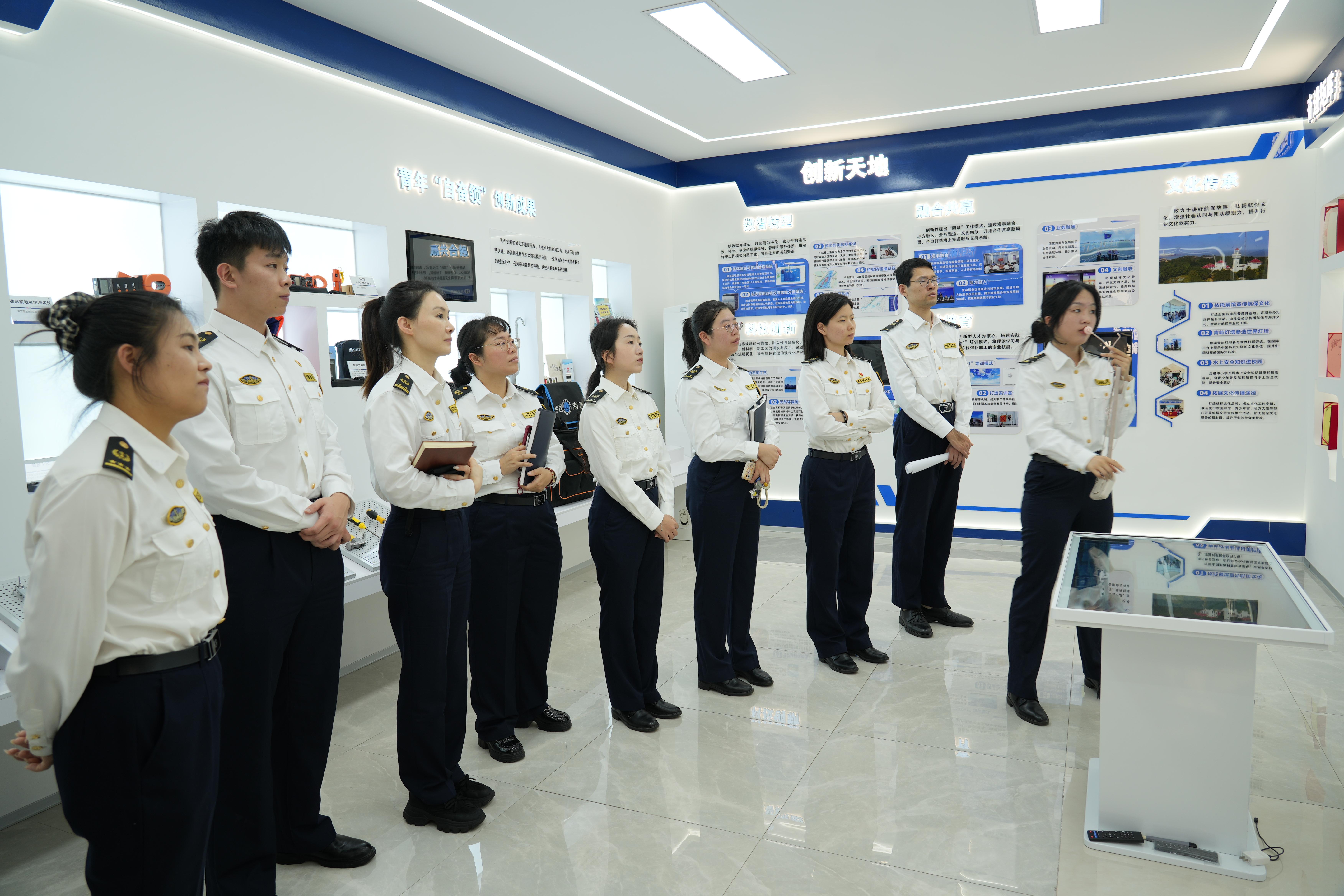 读书分享会结束后,青年们一同参观了厦门航标处“航保高质量发展一线示范窗口”——漳州航标管理站。在航标站工作人员的引导下,大家详细了解了航标站在业务值班、航标维护、海事航保融合共赢等方面的工作内容,近距离参观了“烟墩容光”创新工作室、规范化仓库和文化长廊,观摩了青年创新成果,也学习了一线示范窗口规范化服务、精细化管理的先进经验。