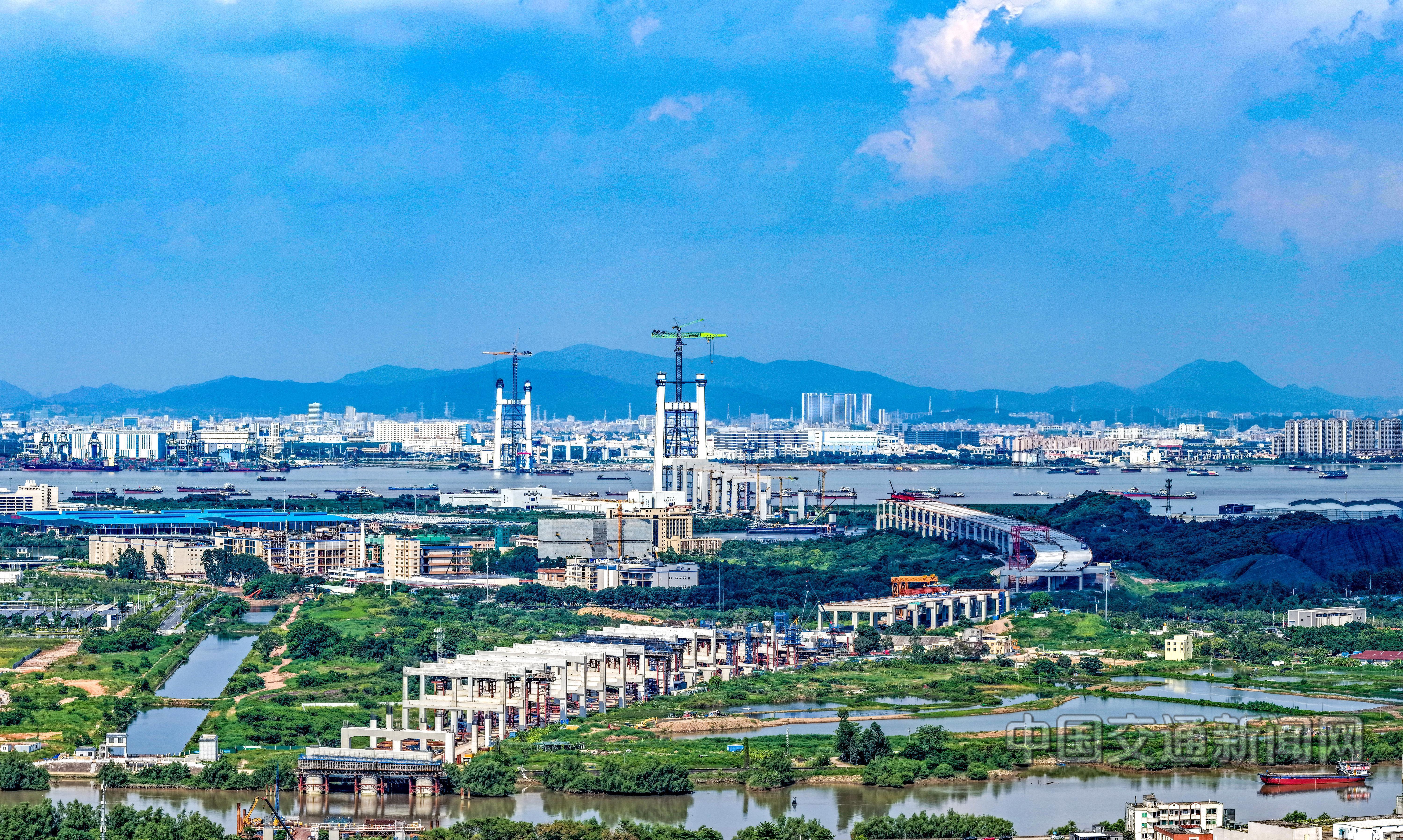 广东狮子洋通道与广中江高速公路衔接段,南中大桥正在进行一场世界首创的“增肥手术”,将从双向6车道拓展到双向8车道,多个工序正在同步提速推进。