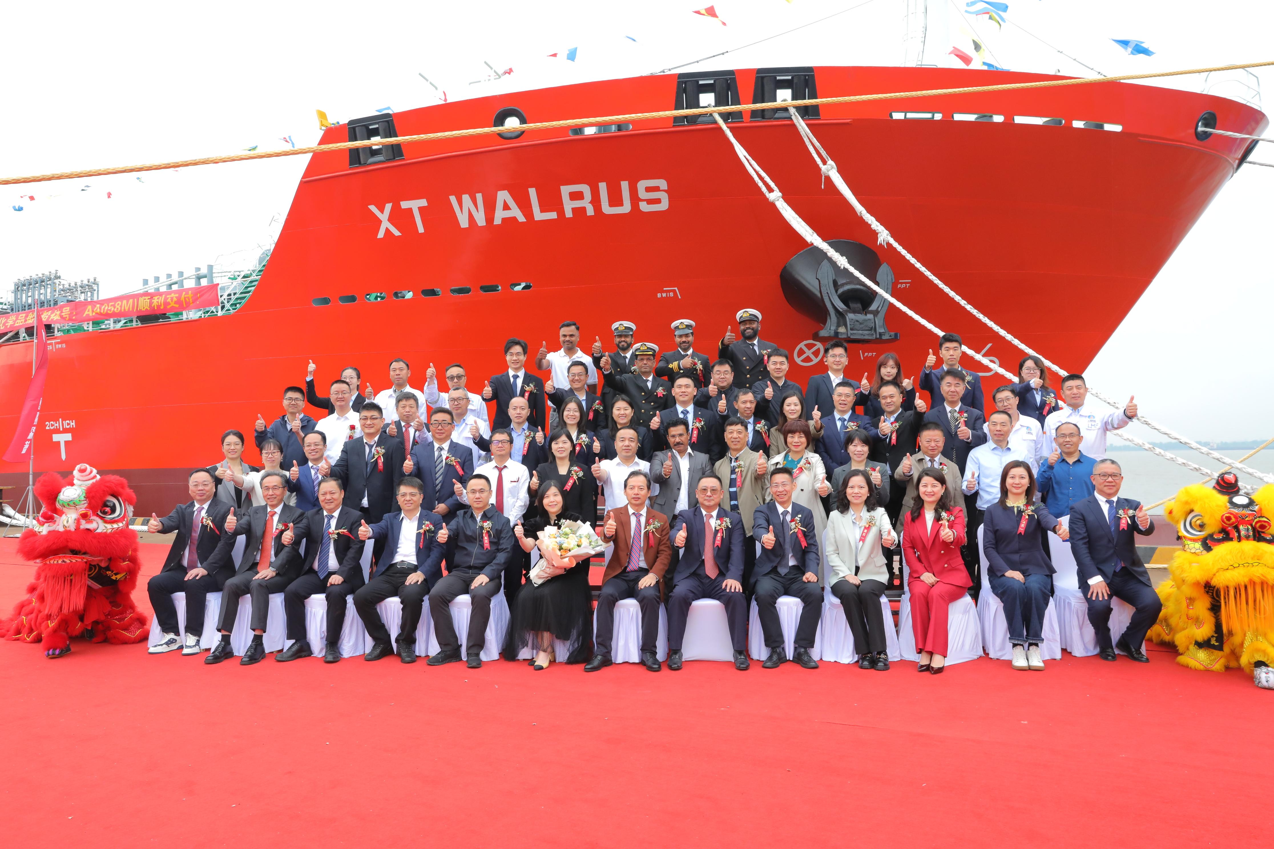 兴通股份董事长兼总裁陈其龙,巴斯夫全球物流采购总监、教母江潔慧,中国船级社副总裁江亚峰,泉州市泉港区委副书记张宇飞,中国工商银行福建分行授信审批部总经理宋士菁,上海欧得利船舶工程有限公司董事长梁宗庆,中英船管(Anglo-Eastern)代表Ganesh,武昌造船党委副书记、总经理迟本斌等嘉宾出席仪式共同见证船舶命名交付,交付仪式由武昌造船党委委员、副总经理田军主持。