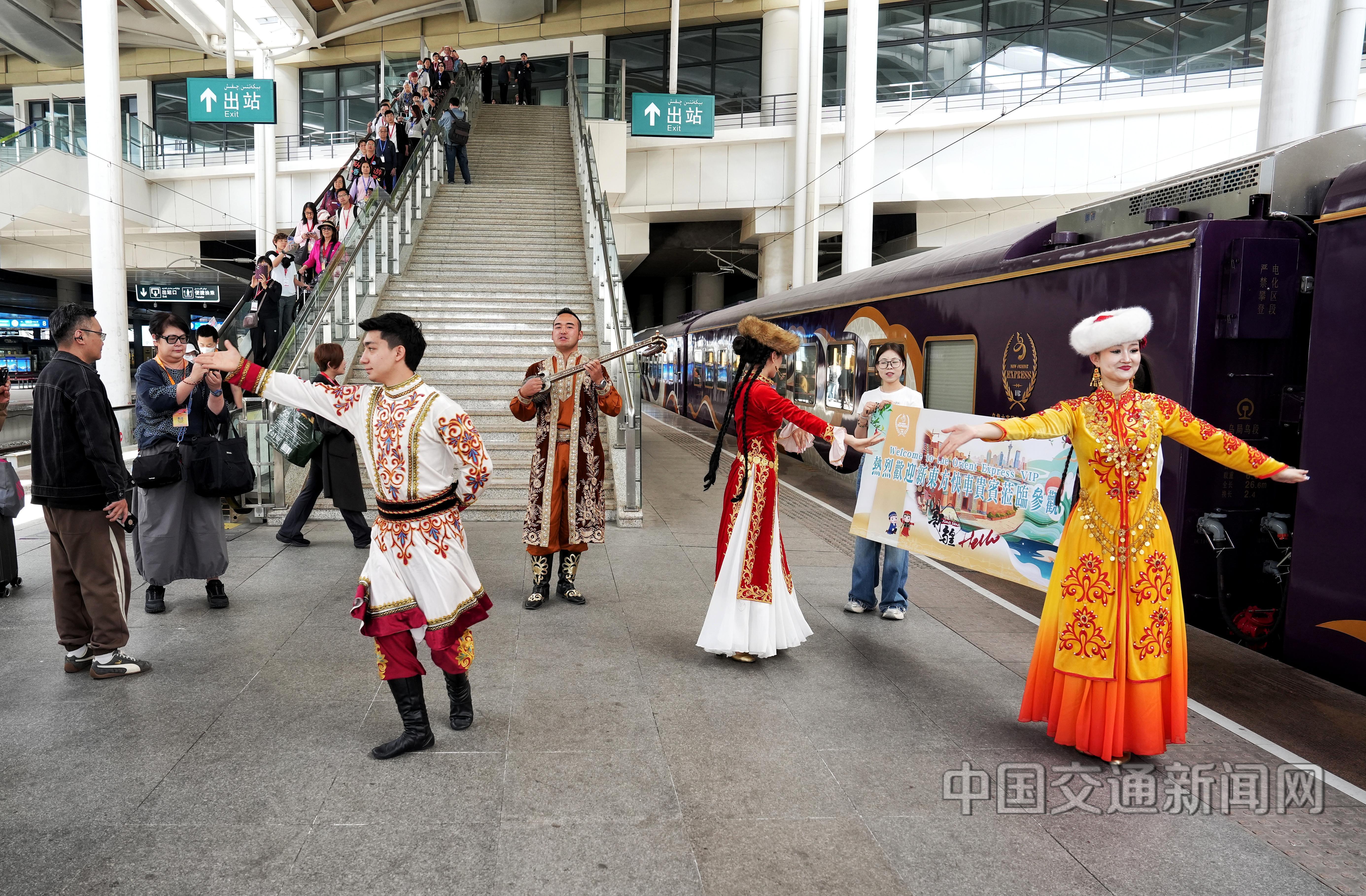 近日,新疆今年首趟“新东方快车”旅游专列自铁路乌鲁木齐站开行(如图)。本年度,新疆铁路部门计划开行百趟旅游专列,其中计划开行“新东方快车”35列,4月至10月间常态化开行,月均开行3趟。