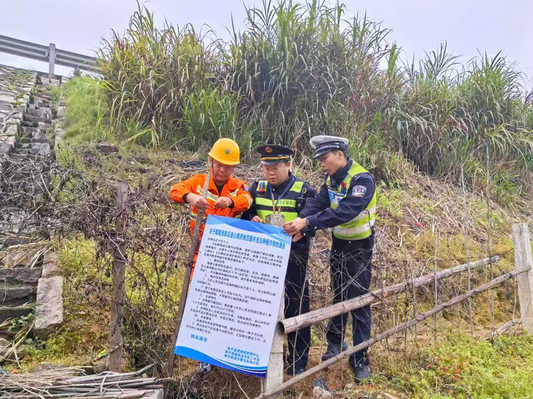 南平高速公路行政执法支队联合高速公路交警、养护等部门,对高速公路“三区”开展拉网式隐患排查,并主动对接属地乡镇政府、村“两委”,对排查出的高速公路用地范围内违法种植作物问题进行集中整治。联合小组采用“人工徒步+无人机巡查”的空地一体模式,对辖区内的边坡、排水沟、涵洞、桥梁等关键部位进行全面细致排查。对排查中发现的隔离栅破损等隐患立行立改,当场拍照记录,并协助养护单位同步修复,第一时间封住行人上高速的物理缺口。