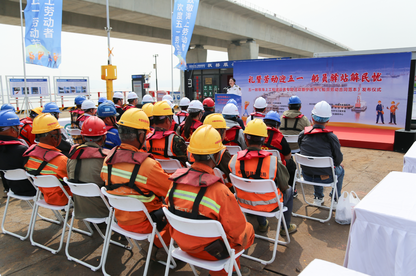 4月28日,宁波海事局联合宁波市人力资源和社会保障局、六横公路大桥二期项目经理部举办“礼赞劳动迎五一船员驿站解民忧”暖心专题活动,为坚守在重大涉水工程一线的项目管理者、船员和施工工人们送上一份特殊的节日礼物。