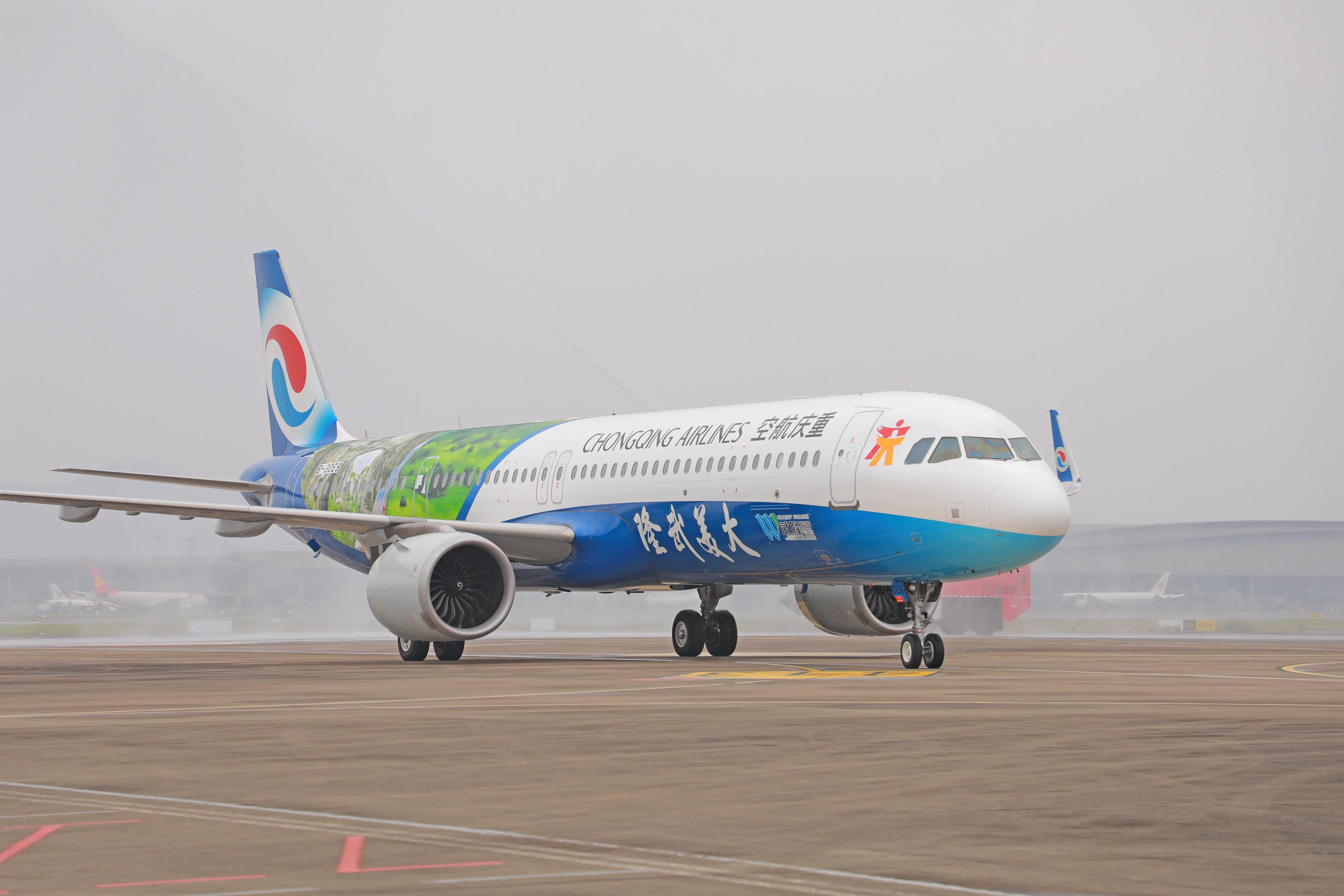 据了解,重庆航空在2012年和2017年先后设计打造了“幸福重庆号”“重庆时光号”“美好重庆号”等重庆城市特色彩绘机队,成为重庆“云端形象推广大使”和“蓝天名片”,为山城市民架设起一条条通达全国、连接世界的空中桥梁,全力助推重庆经济社会发展。下一步,“大美武隆”号将带着重庆市主要旅游目的地品牌形象,飞往新加坡、北京、广州、杭州、上海、乌鲁木齐等国内外重点城市,全力助推成渝地区双城经济圈和西部陆海新通道建设。