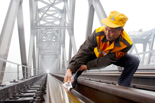直至今日,无论寒冬大雪还是三伏烈日下,他的巡守工作仍在不间断地继续着。每当看到松动的螺栓,他就会用手中450mm的大扳手,将螺栓一紧再紧,直至螺栓完全稳固。而在漆黑的夜里,大桥下不远的巡守房里透出微弱的亮光,陪伴他的还是呼啸而过的列车。
