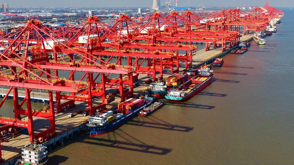 江苏省苏州港太仓港区集装箱吞吐作业繁忙有序