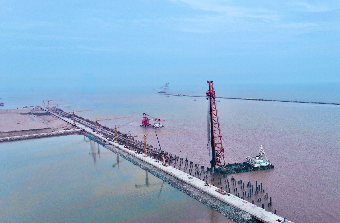 小洋山北集装箱码头及配套工程B标段钢管桩沉桩作业完成