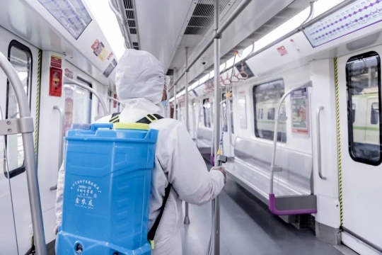 严格落实站车消杀工作,按照交通运输部制定的行业标准开展消杀工作,对车站及列车内乘客接触的设备设施、公共区域的消杀频次不低于6h/次,每日对空调滤网、单程票、客服用品进行消杀。针对本次疫情,我们升级了防控举措,增加消杀频次,对车站及列车内乘客接触的设备设施、公共区域的消杀频次从6h/次提高至2h/次。