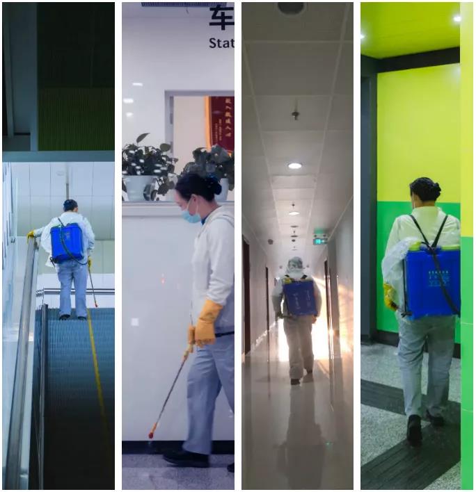 在珠江路地铁站,消杀人员帅凤仙也一刻不敢耽误。每天早晨5点,闹钟一响,她就立即起床、洗漱、出门。6点来到工作间,拿出工具,她和同事们开始车站一天中第一次消杀。