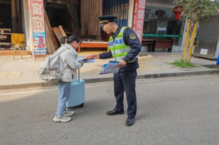 ★2月27日,四川省交通执法总队第一支队十二大队到宜宾市翠屏区牟坪镇开展“不乘违法车辆 确保乘车安全”主题宣传活动,引导广大群众树牢遵纪守法意识和安全出行意识,自觉乘坐正规合法班线客运车辆。