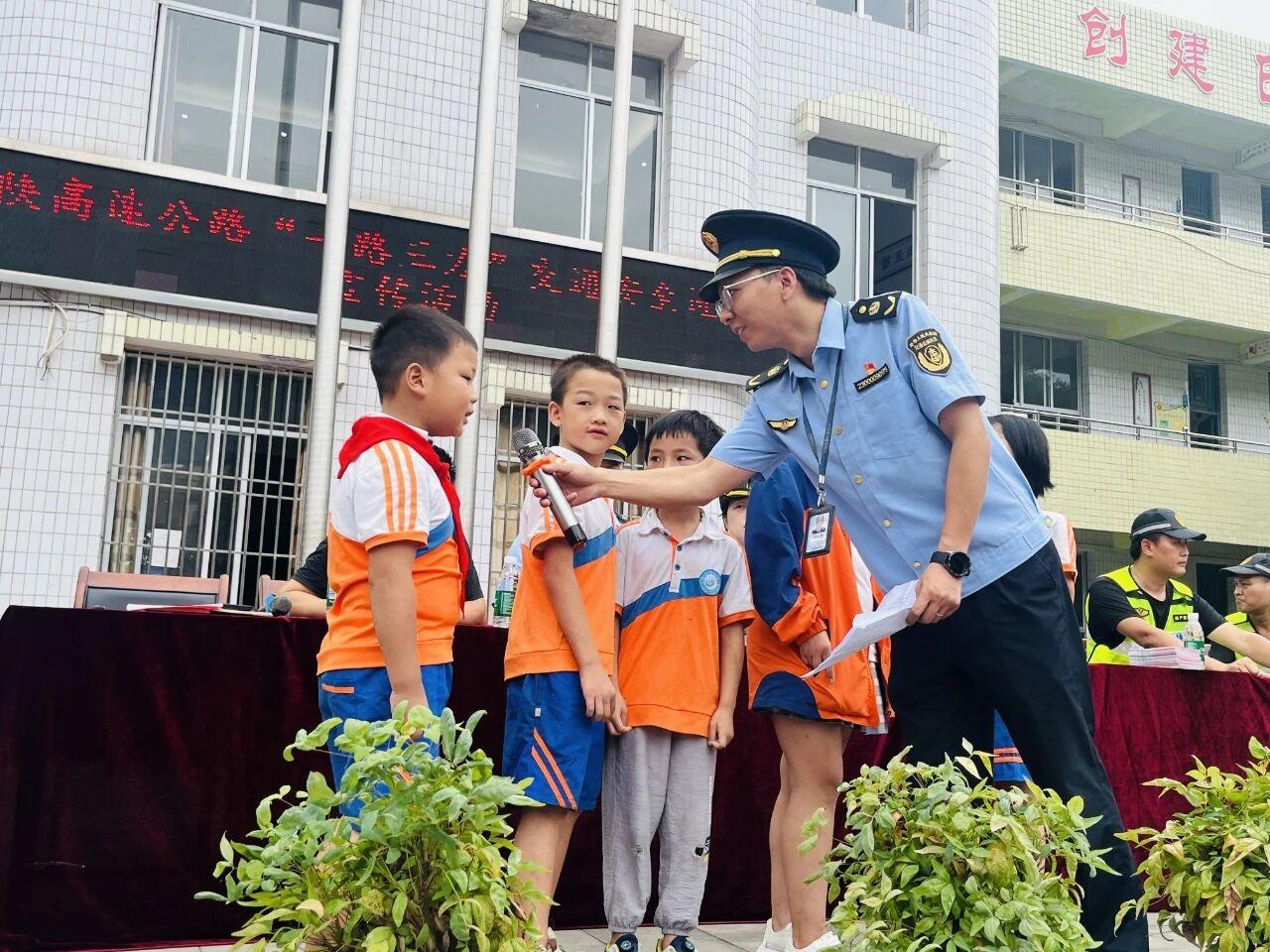 →→交通执法七支队七大队联合高速公路交警、达陕公司到G65包茂高速公路达陕段沿线的宣汉县普光镇中心校,开展交通安全进学校宣传活动,通过现场宣讲、有奖竞答、发放宣传资料等形式,广泛宣传高速公路交通安全常识和有关法律法规。
