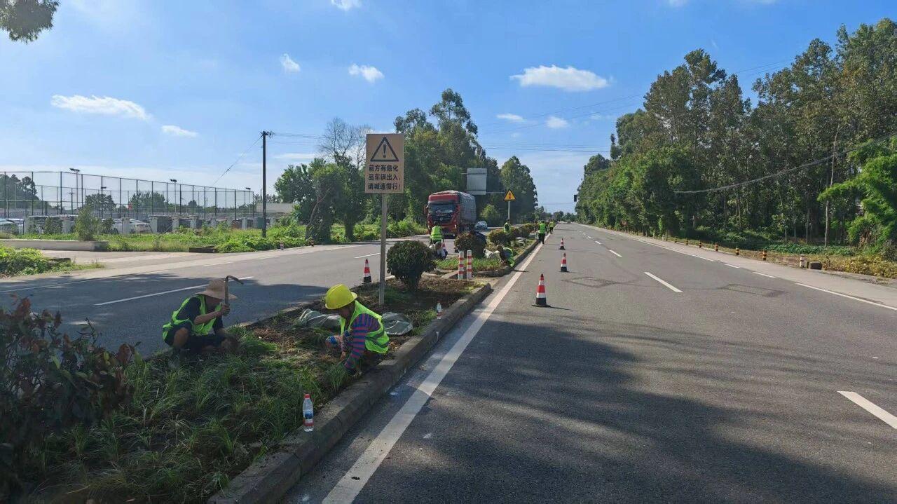 →→德阳市旌阳区交通运输局组织实施孝黄路中央分隔带绿化植物补栽工作,通过选育优良苗木和规范施工流程,进一步优化路域生态环境与通行体验。