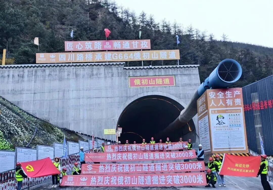 →→国道664香格里拉镇至各卡乡(川滇界)段重点控制性工程——俄初山隧道双向掘进总进尺突破3000米大关,项目建设取得阶段性重大进展。俄初山隧道全长4840米,采用二级公路技术标准建设,双向两车道,设计速度40公里/小时(局部困难路段30公里/小时)。