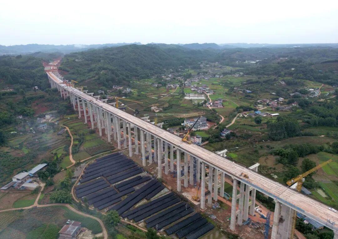 →→全长约1.4公里的天眉乐高速公路雷沟村特大桥右幅贯通,为桥面系、路面及附属结构施工开辟了“高效通道”,显著节约了运输成本,保障了材料供应的及时性,大幅提升了施工效率。天眉乐高速公路乐山段全长约13.2公里,沿线跨越平坝丘陵,桥梁总长度约6.5公里。