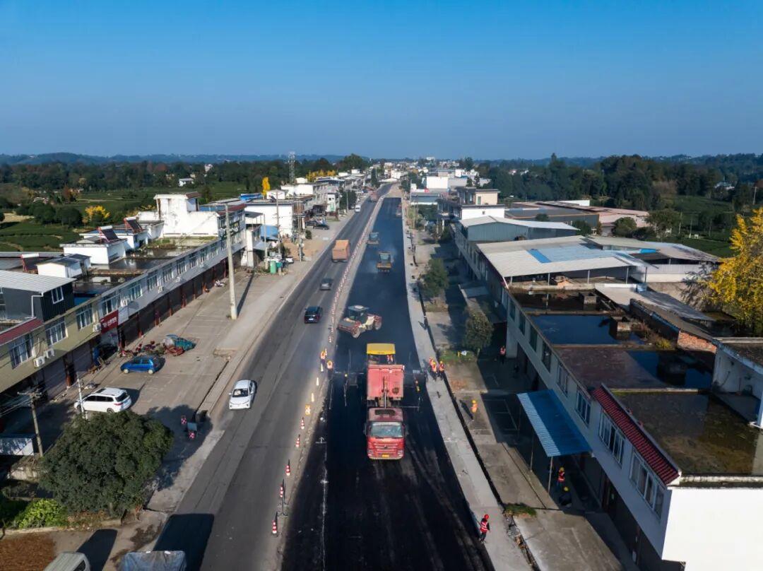 →→国道318名山区黑竹(成都界)至雨城区多营段改建工程一标段扩建段沥青面层顺利铺筑,此次完成3.3公里沥青铺筑。