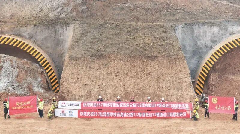 →→攀盐高速公路关键控制性工程——房板山1号隧道正式进洞施工,标志攀盐高速公路全线20座隧道工程建设攻坚战全面打响,为攀盐项目整体推进按下“加速键”。房板山1号隧道位于盐源县盐塘镇,设计全长4440米,是全线先期开工的重点隧道工程之一。