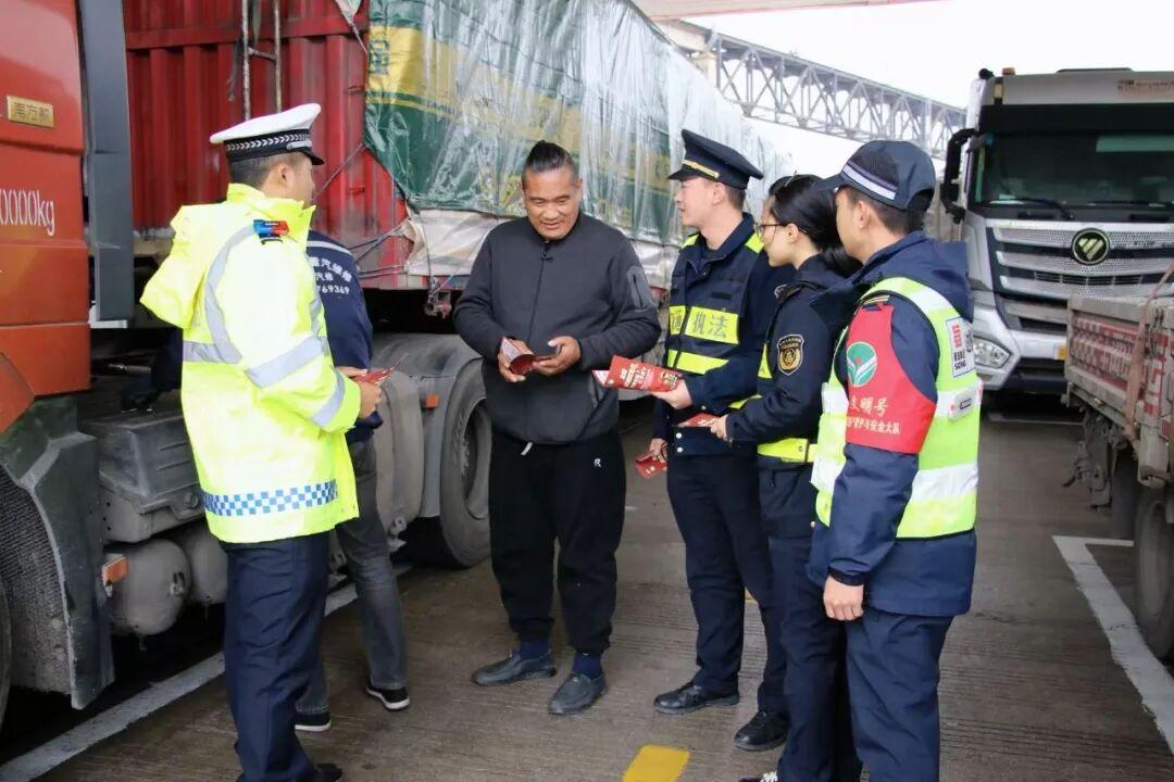 →→交通执法七支队六大队联合高速公路交警、运营公司,在G65包茂高速公路(达陕段)万源北服务区开展行车安全宣传活动,通过发放资料、现场讲解等方式,向司乘人员宣传出行前检查车况、杜绝超员超载等安全知识,有效提升司乘人员风险防范能力。