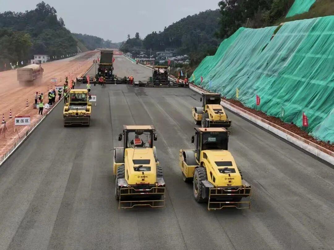 →→天眉乐高速公路项目全线水稳底基层首件试验段(青神县境内)顺利完成铺筑,标志着项目路面工程施工正式拉开序幕,为后续大规模、高效率的路面施工按下“加速键”。