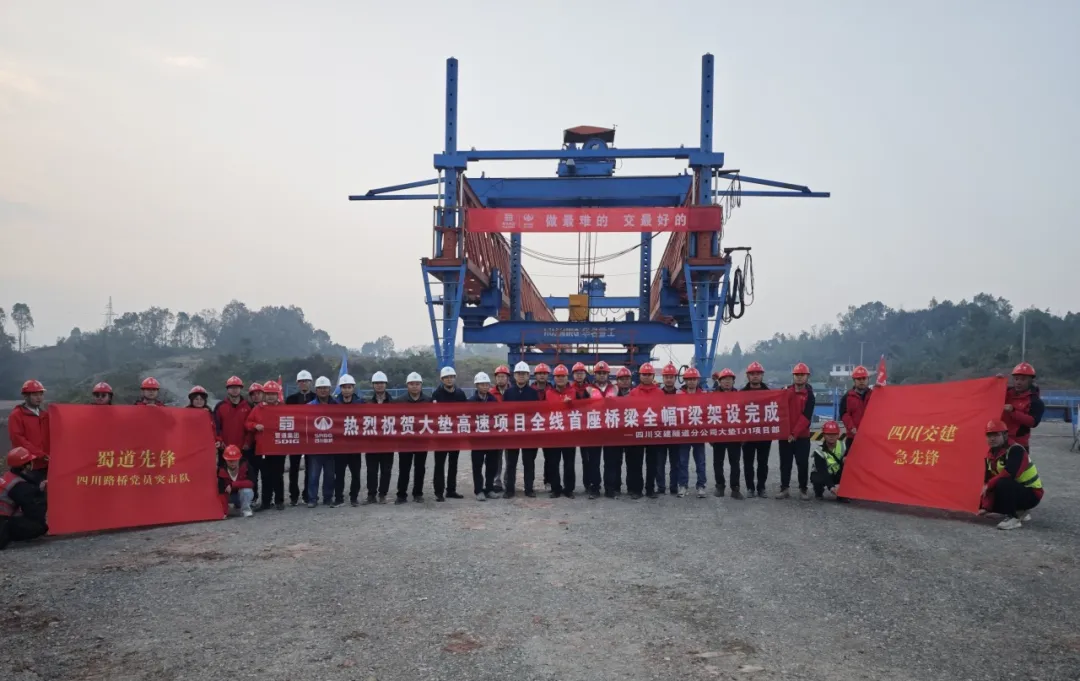 →→大垫高速公路石厂沟大桥全幅T梁架设完成,打通标段内施工通行脉络,为后续桥面系施工及全线贯通奠定坚实基础。石厂沟大桥位于达州市大竹县高穴镇木牌村,采用单跨40米装配式预应力混凝土简支T梁结构。