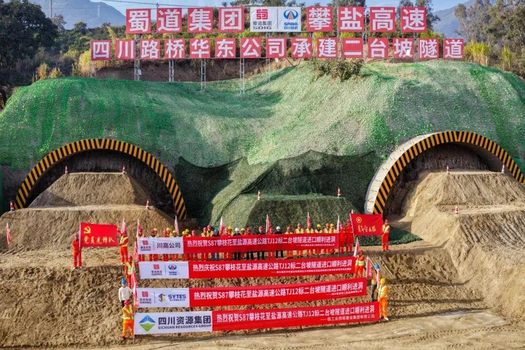 →→攀盐高速公路二台坡隧道盐源端顺利进洞,标志着项目主体工程建设正式拉开帷幕。二台坡隧道位于攀枝花市仁和区布德镇,属越岭隧道,是攀盐高速公路全线重点控制性工程之一。隧址区地形起伏较大,设计为左右线分离式隧道,采用-2%的单向坡,左线长7105米,右线长7142米,最大埋深约1033.8米。