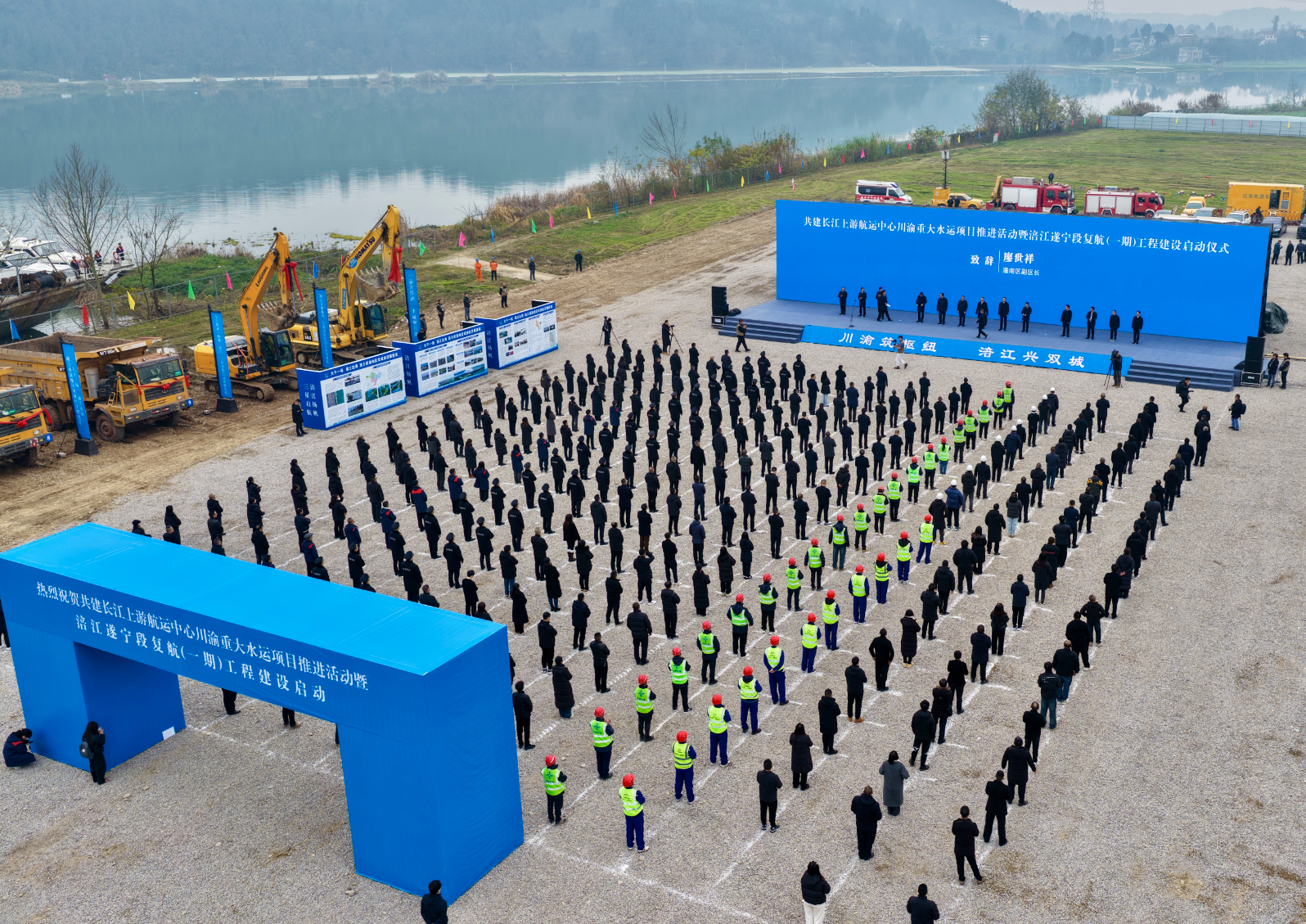 2025年12月29日,共建长江上游航运中心川渝重大水运项目推进活动在四川省遂宁市涪江三星船闸工程现场举行。备受关注的三星船闸与遂宁港大沙坝作业区(一期)工程正式开工建设,标志着涪江复航迈出关键一步。