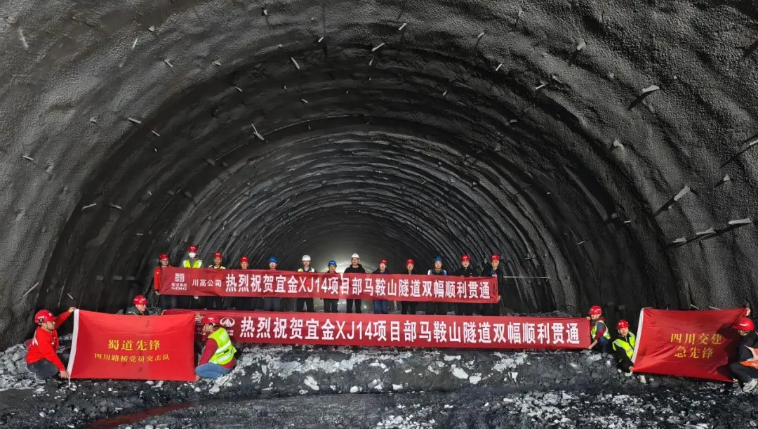 →→宜攀高速公路马鞍山隧道实现双幅顺利贯通,标志着项目建设取得阶段性进展。马鞍山隧道位于凉山州雷波县境内,全长6.2公里,最大埋深达1045米,瓦斯段长度2700米。出口端地形陡峭、覆盖层松散,施工过程中面临偏压、涌水、软岩大变形等多重挑战,安全风险突出、技术难度极大。