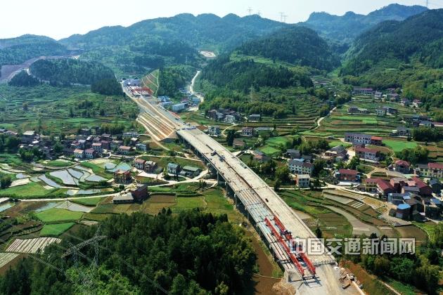 4月8日,由中铁四局六公司承建的重庆渝湘复线高速公路巴(南)至彭(水)5标段徐家坝大桥右幅最后一片T梁精准入位,标志着渝湘复线高速公路全线首座大桥顺利架通。