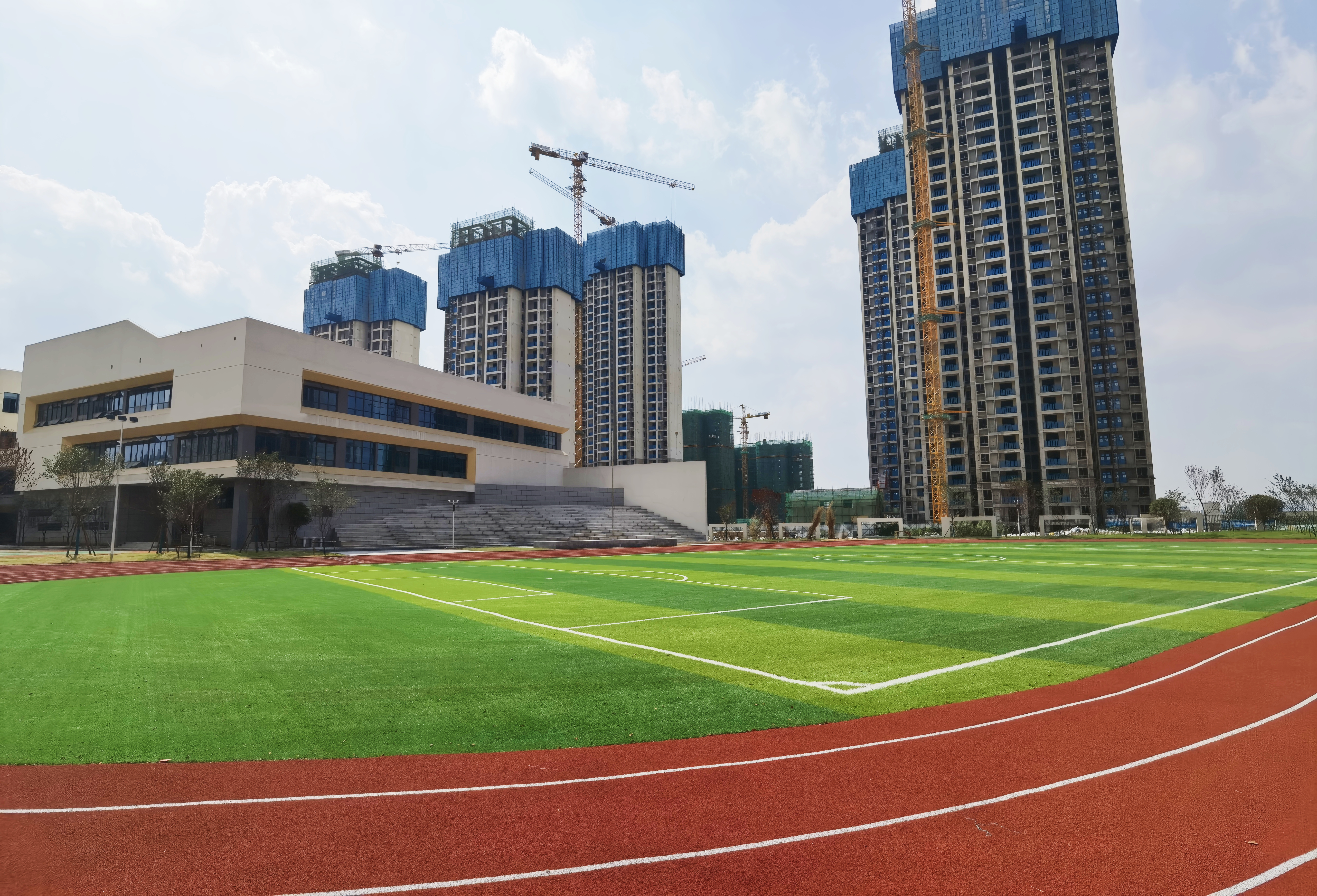 记者了解到,在市政路网和校园建设中,四航建设者践行海绵城市理念,采用透水铺装,侧分带采用下沉式绿化带,将雨水储存汇集,提供3天内道路冲洗、绿化浇灌用水水量,最大限度地实现雨水的积存、渗透和净化。新天中学的建设,四航建设者设置标准化临边防护及安全通道,采用湿法作业,借助自动喷淋设施,对施工道路进行全天候无死角清洗。在新天小学,为了确保使用安全,施工多选用暖性、弹性、防滑的地面材料,如防滑地砖、地胶地面、实木地板;为打造安静学习环境,四航建设者采用具有吸音防火功能的材料,如石膏板、铝方通、铝单板吊顶的顶棚,为九月即将到来的“小主人”提供了良好的学习生活环境。