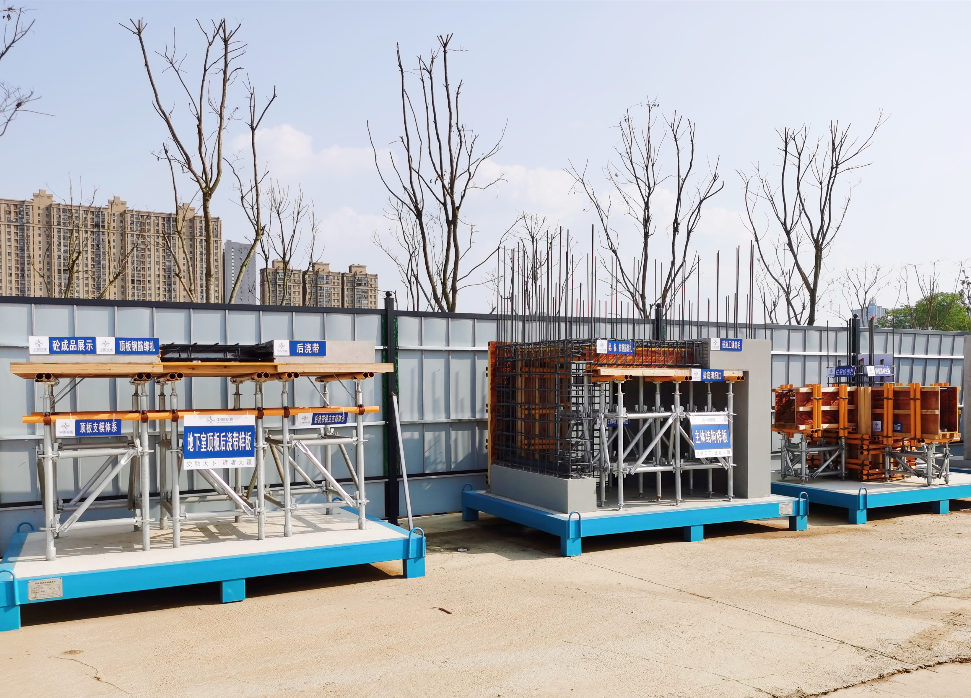 约束钢管混凝土是装配式建筑特有的混凝土结构技术,为建筑业十项新技术之一,项目团队在查阅了所有设计和施工规范后,发现当时仅有一项行业标准,而且施工过程中还存在诸多的重难点。基于此,项目部组建起了一支技术攻关小组,项目总工周军带领项目部工程技术人员与结构设计师积极沟通,多方开展市场调研,多次前往设计院咨询了解设计与施工要点,并对钢结构护筒连接节点的焊接、安装、固定等工艺进行多次放样检测,通过一次次实验比对,将钢护筒中的普通混凝土变更为自密实混凝土,确保了钢结构混凝土施工的质量。