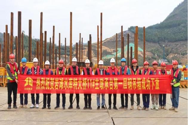 2月15日,广西巴羌高速关键控制性工程岩滩水库特大桥第一层钢套箱顺利下放。