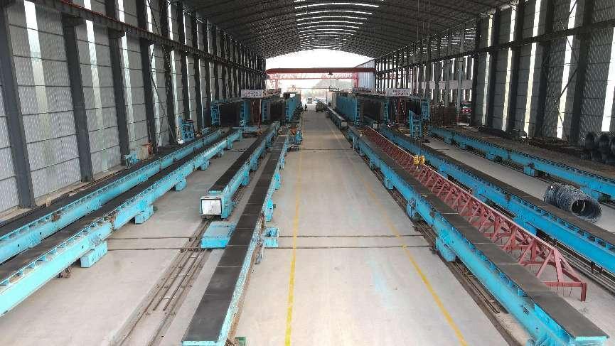 “预制区200米移动式台座生产线,产能为每天3片梁板,比相同产能传统预制梁厂减少约200米的长度。同时,该移动台座可实现钢筋绑扎、浇筑、养护在同一生产线上流畅作业,极大缩短了梁体预制时间和土地征用,也为科学把控了桥梁施工总工期,为一些受场地限制的桥梁施工项目提供新的建设思路。”四分部项目经理朱建这样介绍。