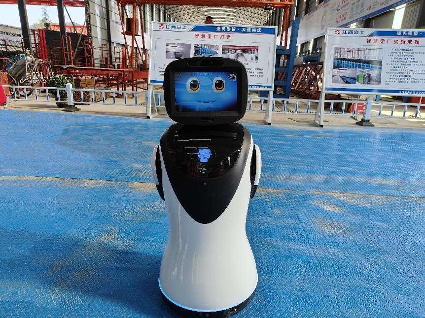 来到厂区大门入口,“请刷卡!”的系统提示音响起,只有通过实名制人脸识别的人员方可进入梁厂,智能门禁系统可有效防止无关人员进入,也为现场管理提供考勤依据。“请通行!”脸部识别成功进入梁厂后,迎面走来一个有着圆润的脑袋、大大的眼睛、萌力十足的机器人会朝你喊道“欢迎各级领导临2号智慧梁场指导工作,请佩戴好安全帽!”这是四分部梁厂引进的智能机器人“小宝”,它是一名迎宾员、讲解员、巡查员,也是一名好玩伴。此外,通过运用数据采集、无线网络及视频监控等技术手段,联动路桥卫士、顶点云等app,梁厂工作人员利用一部手机即可实现对厂区内人员操作、设备运行、施工过程等24小时监控,实现管理智能化、信息化。