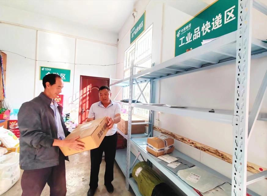 在福场坪村寄递物流综合便民服务站,快递收储室干净整洁,货架一线排开,税世宇领取快递时,都会驻足停歇一阵子,和乡亲们分享网购经验,推荐淘宝好物。此时,李成文在便民服务站烧水泡茶、对号取货,不止像“站长”,更像“店小二”。