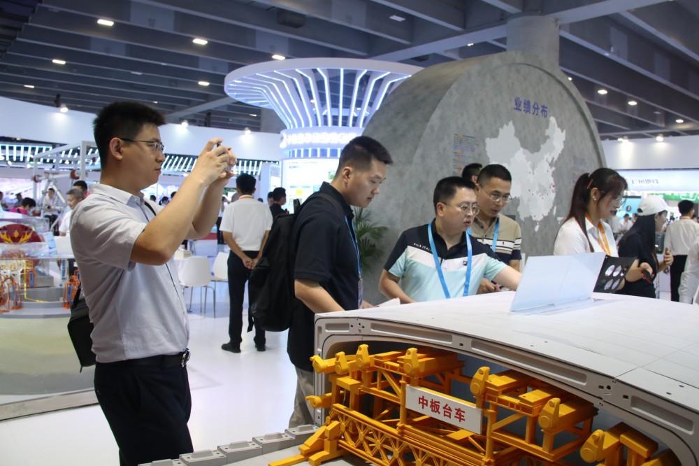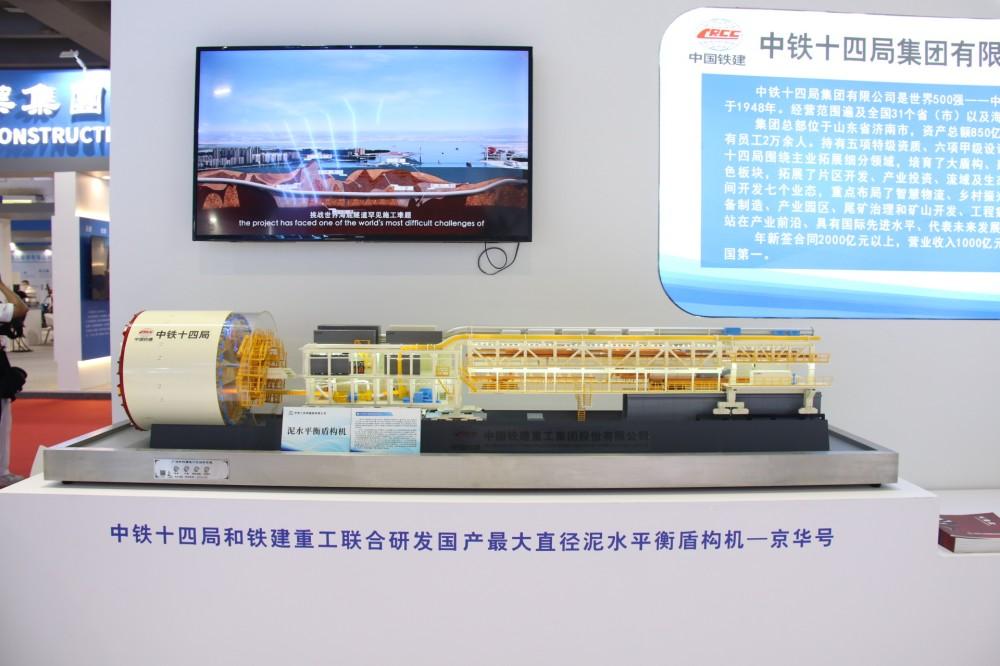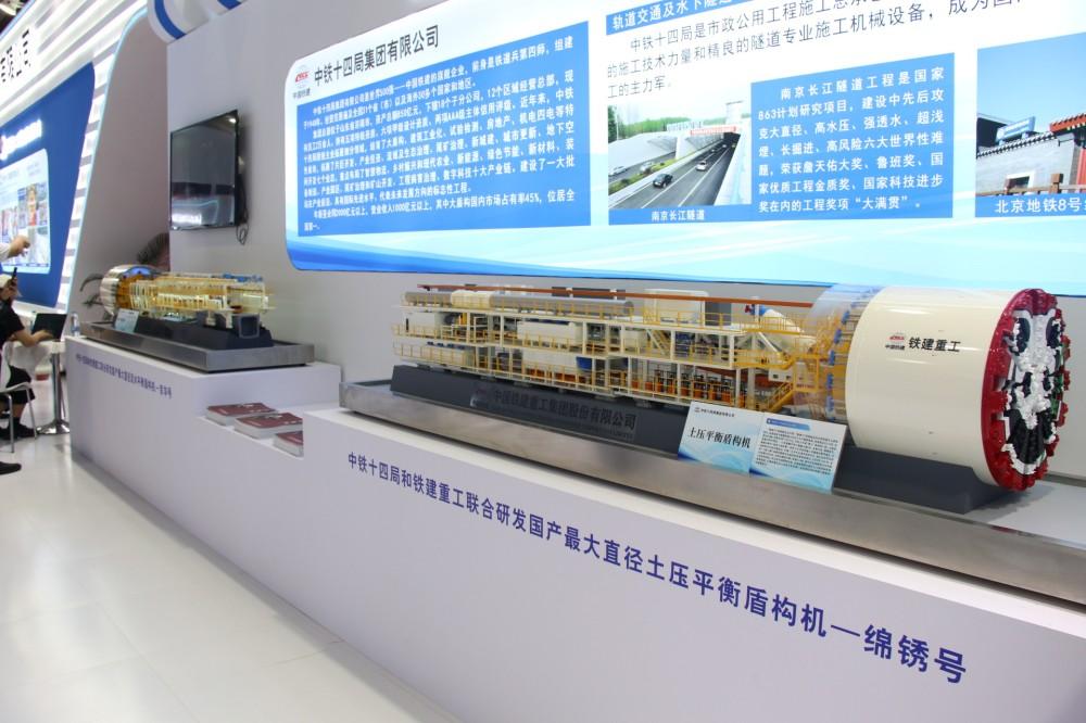 中铁十四局展区,展出中铁建三个“网红产品”——“京华号”“锦绣号”盾构机模型及深圳地铁3号线四期坪西装配式车站模型,展示中国铁建大盾构品牌及地铁车站装配式建造技术等核心竞争力、最新技术成果和市场影响力,受到行业的密集关注,迎来观众密集“打卡”,成为整个展区的“网红”展厅。
