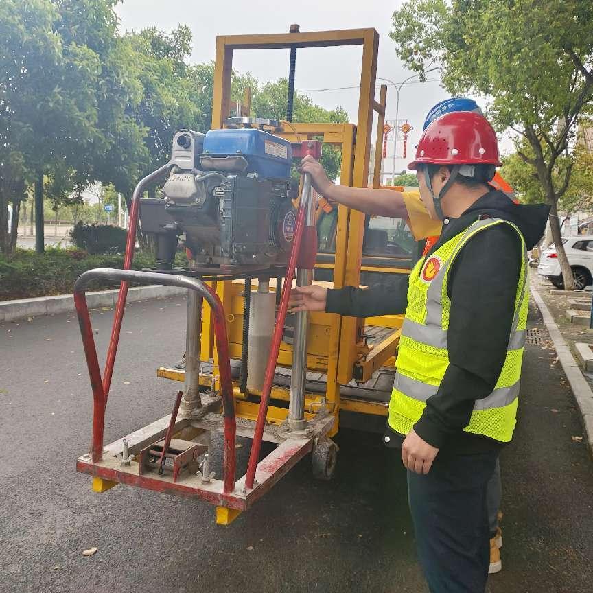 创新是引领发展的第一动力。抚州管理中心在追求高质量发展的同时,以“科技促质量、科技保安全”的建设创新理念,强化科研项目与设计、监理和施工单位联动,集中开展技术攻关和“微创新”相关攻坚活动。其研发的横、纵向接缝台阶实用性强、坚固耐压、使用方便,可随意拆装移动,能够与各类台阶对接,实现无障碍移位。为方便路面取芯,该项目创新设计了取芯机自动升降平台,其优势为自带蓄电池可固定在车厢内并能随车移动,仅需一人推动滑轮,摁动开关按钮,便可完成取芯机的上下车工作,省力又安全,能满足日常随机取芯、取样的工作需求。